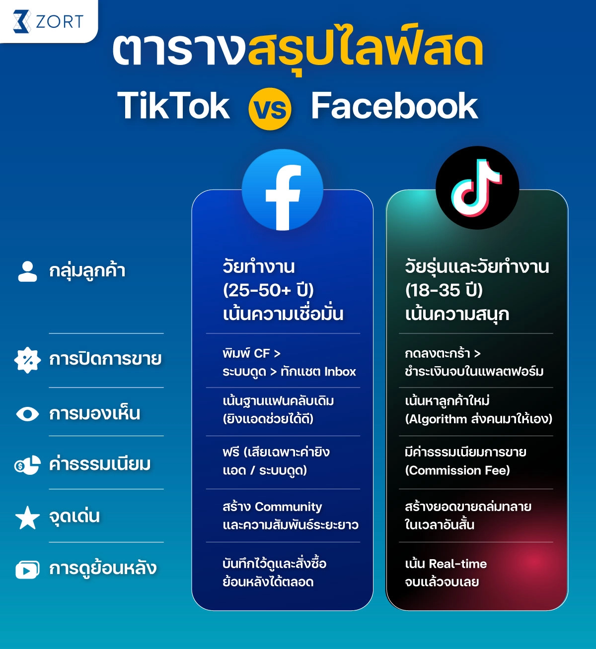 สำหรับใครที่กำลังจะขยายช่องทางแล้วยังลังเลว่าควรเริ่มไลฟ์สดที่ไหนดีระหว่าง TikTok กับ Facebook? เพราะทั้ง 2 แพลตฟอร์มนี้มีจังหวะการขายและสไตล์กลุ่มลูกค้าที่ต่างกันโดยสิ้นเชิง บทความนี้ ZORTOUT เลยขออาสาพาไปเจาะลึกความต่างแบบชัด ๆ ว่าระหว่าง Facebook VS TikTok ไลฟ์สดขายของทางไหนดีจะตอบโจทย์ และคุ้มค่าสำหรับร้านของคุณที่สุดในปีนี้