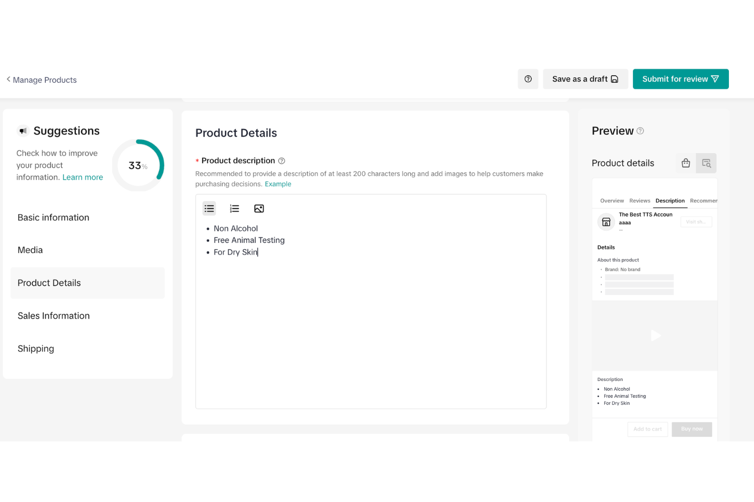 ขั้นตอนที่ 4: ใส่รายละเอียดสินค้า (Description) ให้น่าเชื่อถือ