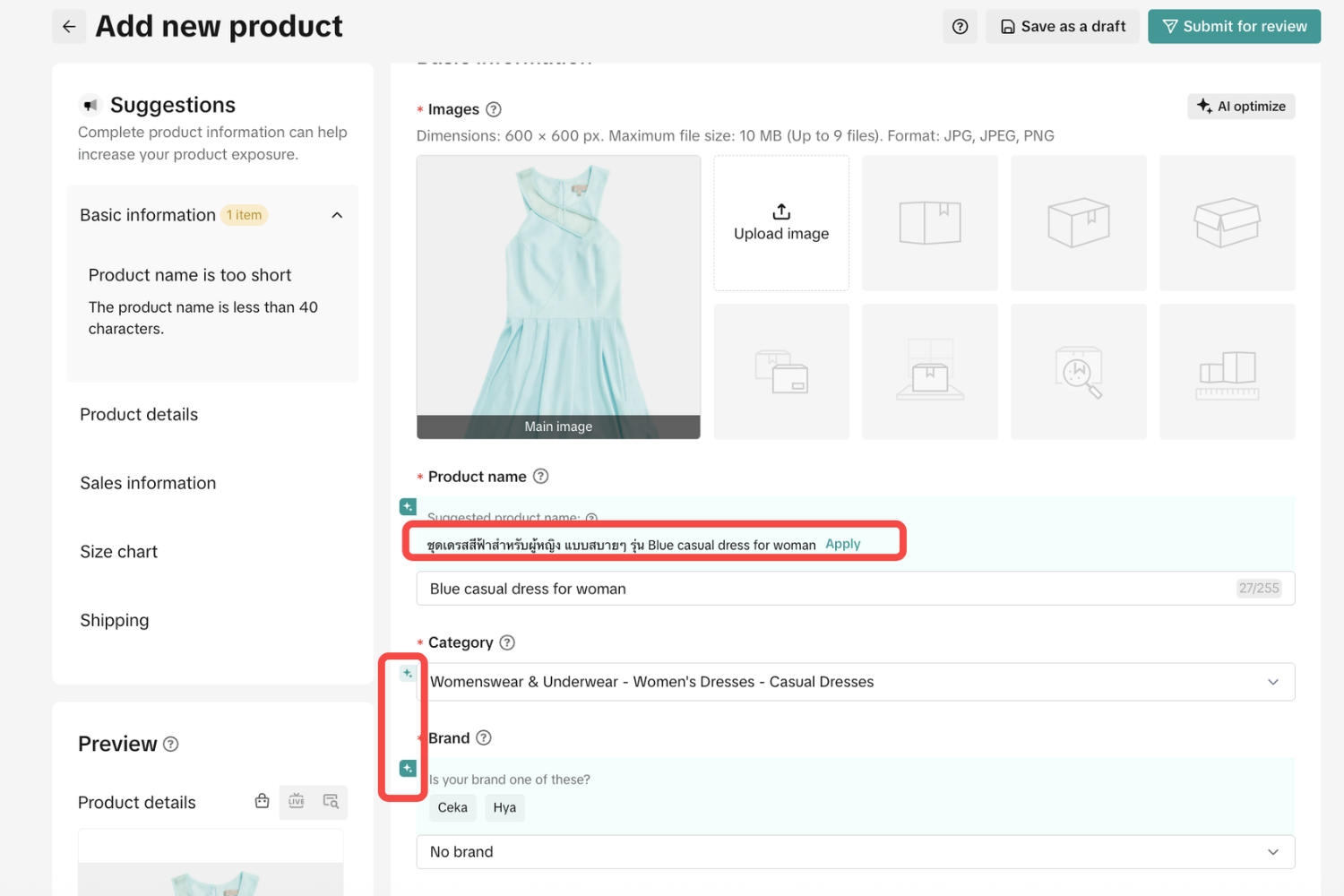 ขั้นตอนที่ 2: กรอกชื่อสินค้าและเลือกหมวดหมู่ให้แม่นยำ