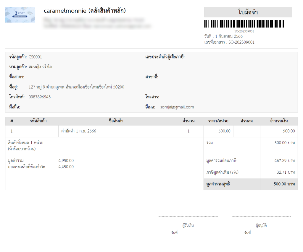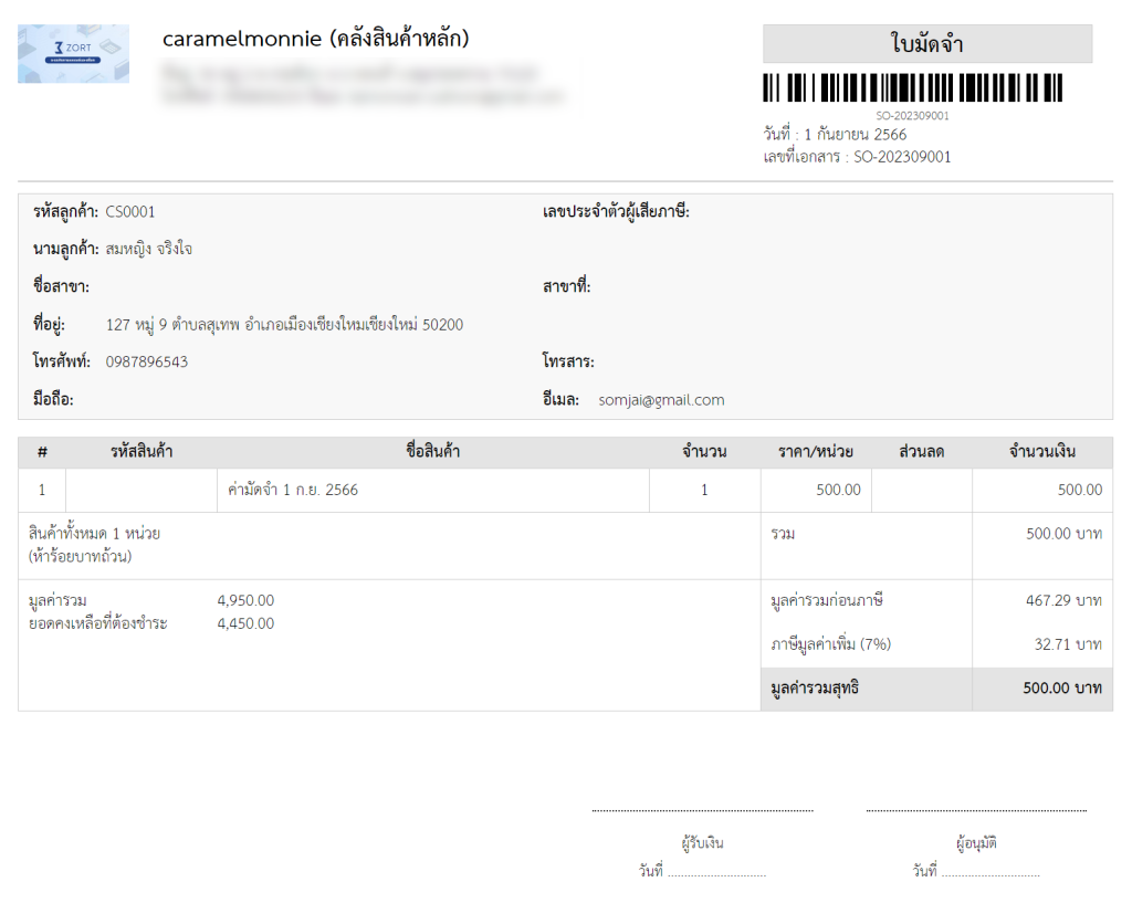 วิธีการพิมพ์เอกสารใบมัดจำ