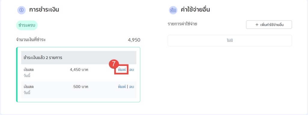 7. ไปที่หัวข้อการชำระเงิน คลิกปุ่ม “พิมพ์” หลังการชำระเงินงวดที่ 2 เรียบร้อยแล้ว