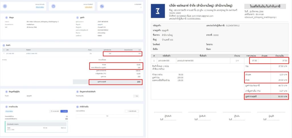 2. ส่วนลด 50.00 บาท : 50 – 25% = 12.5