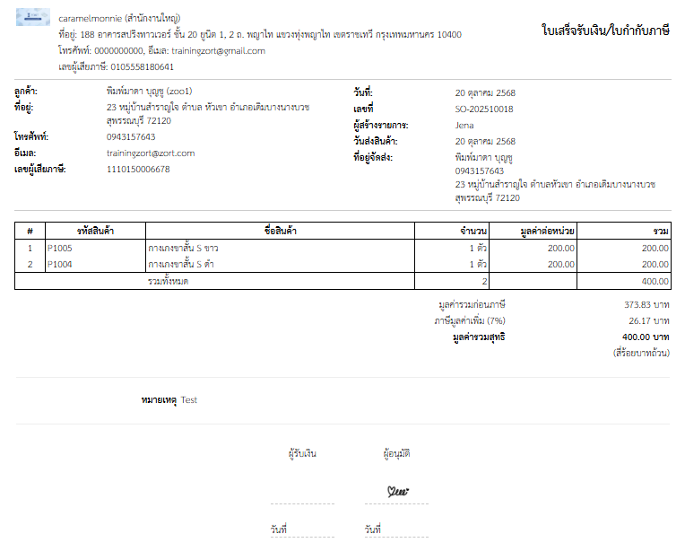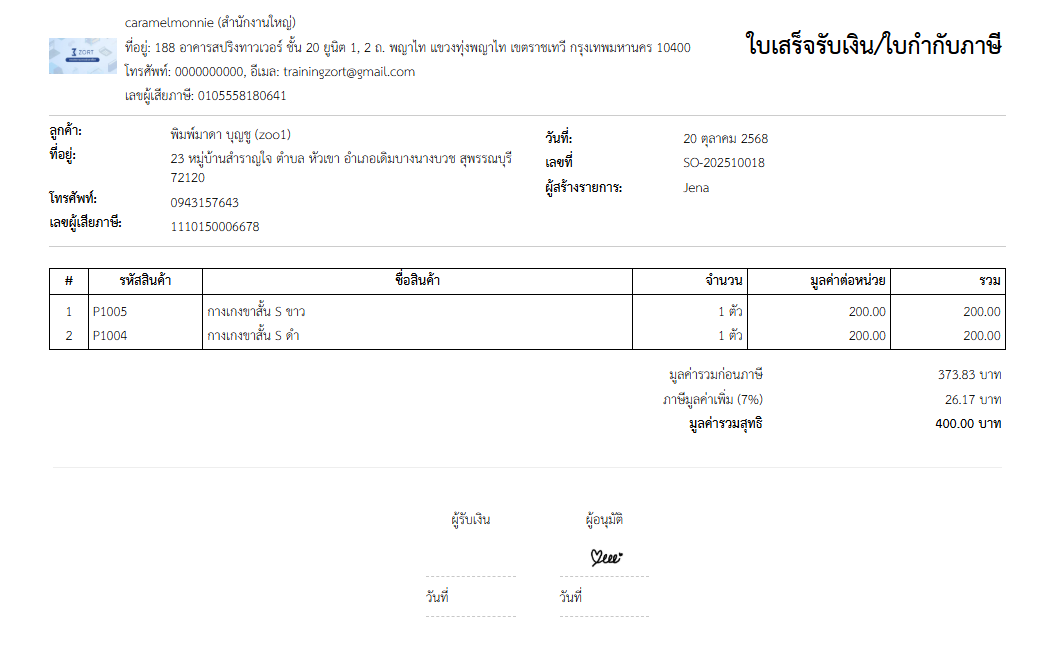 หลังจากผู้ใช้งานทำตามขั้นตอนด้านบนเรียบร้อยแล้ว ผู้ใช้งานจะสามารถออกเอกสารในหน้ารายการขายได้อย่างถูกต้องและครบถ้วน ช่วยให้กระบวนการทำงานเป็นไปอย่างราบรื่นและมีประสิทธิภาพ