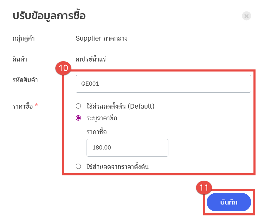 10. กรอกรหัสสินค้าและราคาสินค้าของคู่ค้า