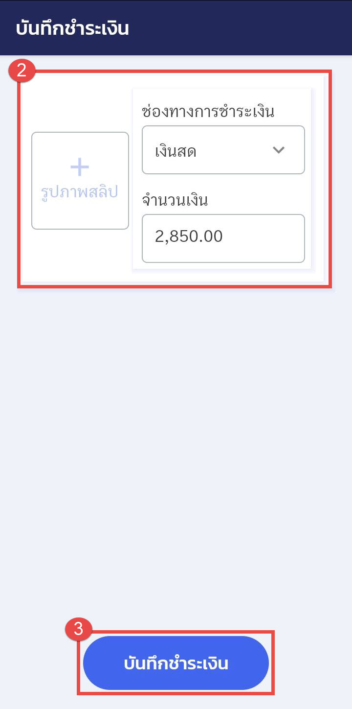 1. คลิกที่ปุ่ม “บันทึกชำระเงิน”