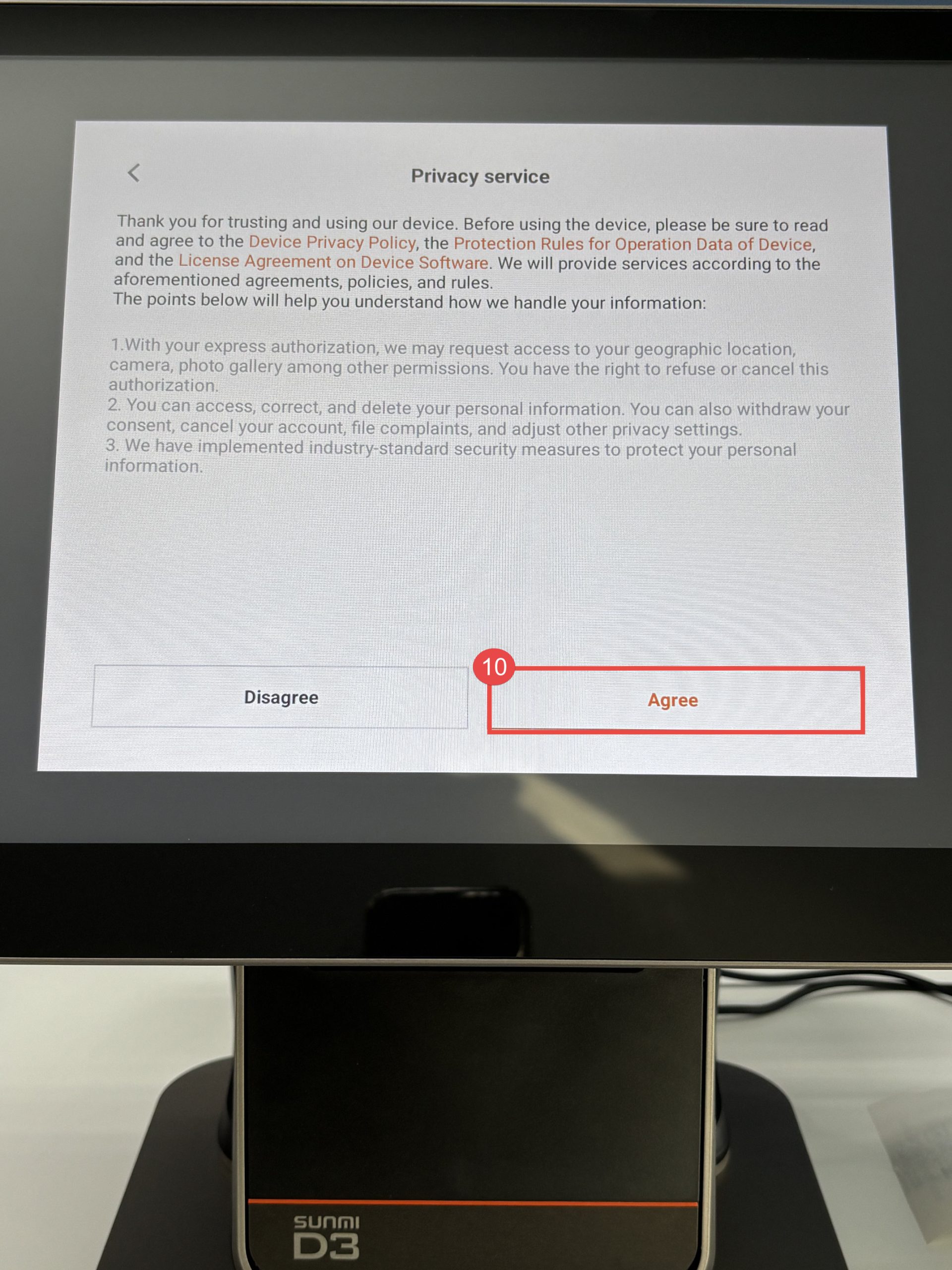 10. กดปุ่ม “Agree” เพื่อยอมรับเงื่อนไข Privacy Service