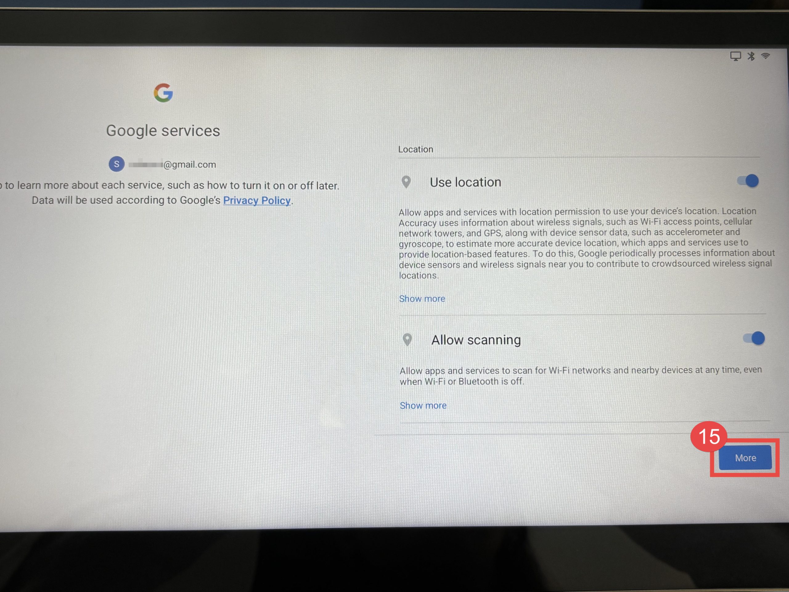 15. หลังจากอนุญาตการเข้าถึง Location และ Scanning เรียบร้อยแล้ว ให้กดปุ่ม “More”