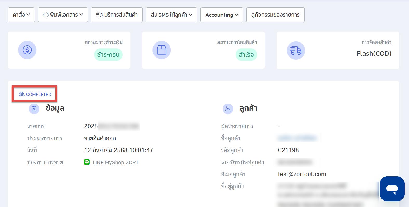 9.) สถานะการชำระเงินจะเปลี่ยนเป็น “ชำระเงินแล้ว”