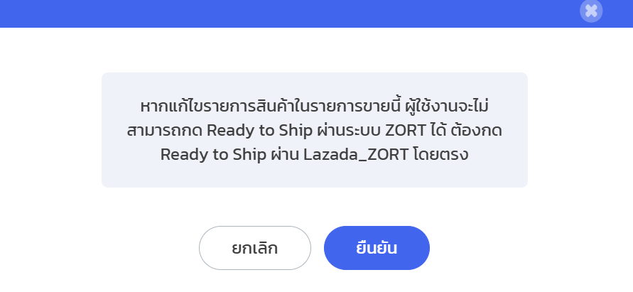 กรณีผู้ใช้งานแก้ไขรายการสินค้าในรายการขาย ระบบจะอนุญาตให้กดบันทึกรายการขายได้ตามปกติ แต่ผู้ใช้งานจะไม่สามารถกด “Ready to ship” บนระบบ ZORT ได้ จะต้องกด Ready to ship บนแพลตฟอร์มเท่านั้น