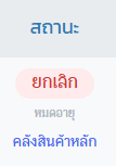 9. สถานะ“ยกเลิก (หมดอายุ)” หมายถึง เมื่อลูกค้ายังไม่ชำระเงินตามระยะเวลาที่ตั้งค่าไว้ ระบบจะสถานะรายการขายดังกล่าวเป็น “ยกเลิก (หมดอายุ)” อัตโนมัติ โดยระบบจะคืนสต็อก “พร้อมขาย” เข้าคลังเดิมหรือคลังที่เลือกไว้ในรายการขายนั้น ๆ