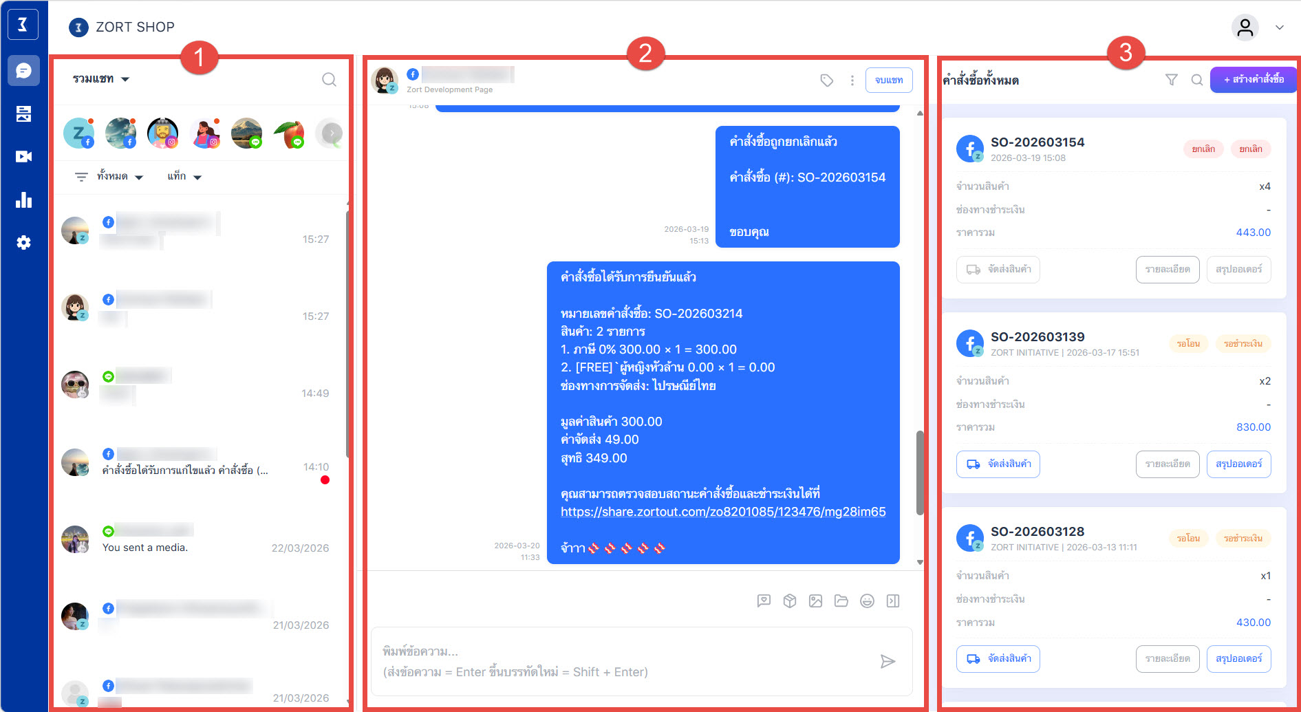 ภาพรวมของฟีเจอร์ “รวมแชท” ในหน้า ZORT Social Chat