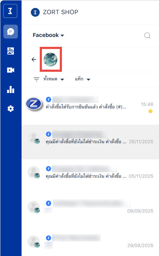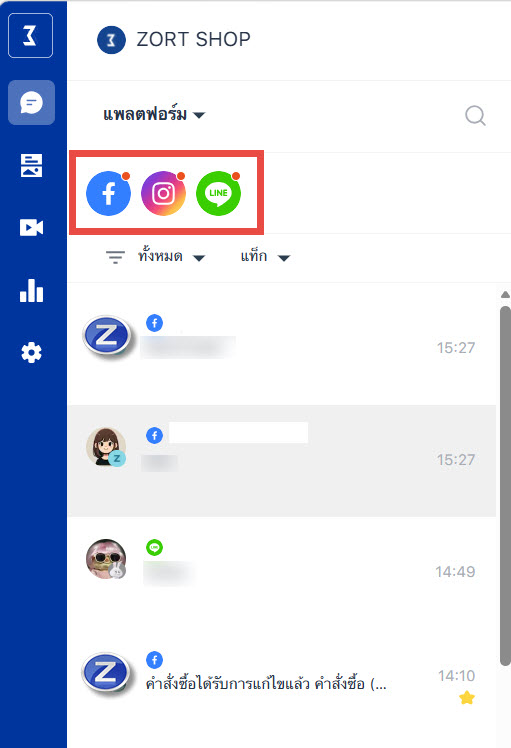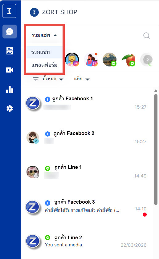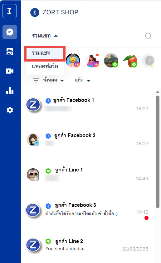 2.1 รวมแชท : ระบบจะแสดงแชทลูกค้าของทุกแพลตฟอร์มไว้ด้วยกัน
