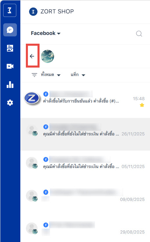 1) ทั้งหมด : ระบบจะแสดงแชทลูกค้าทั้งหมด