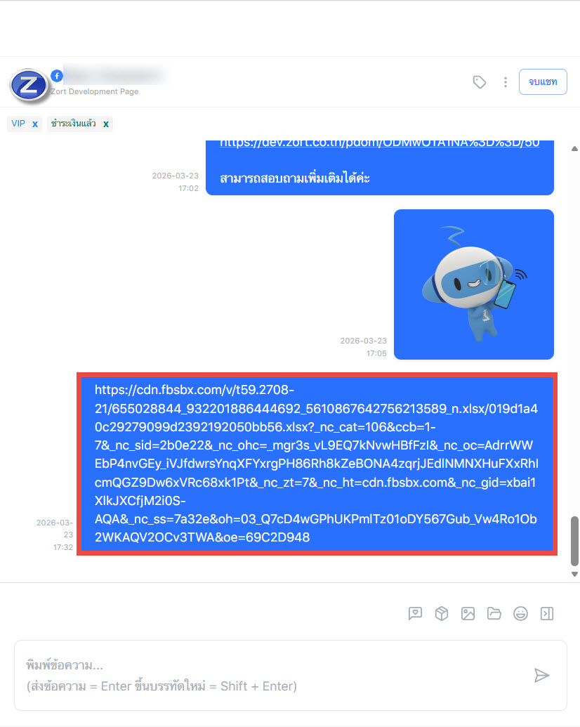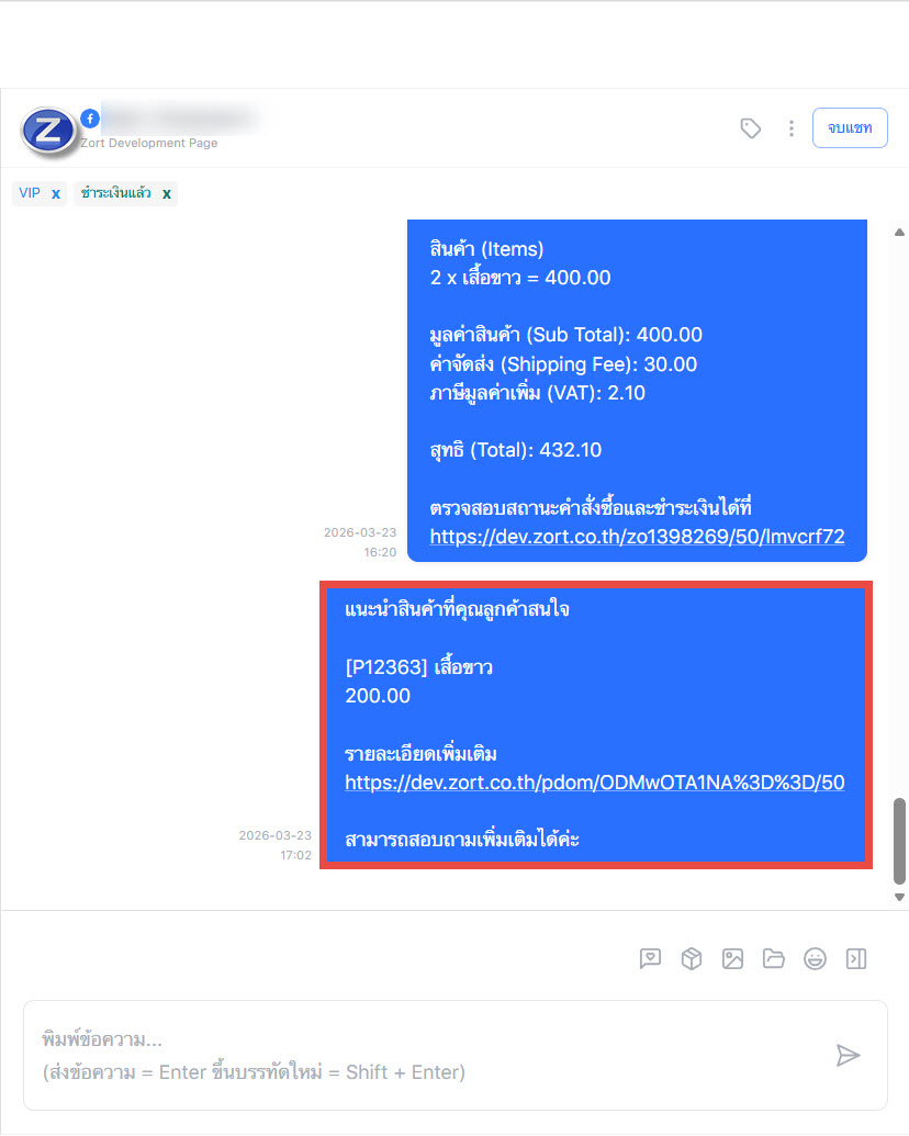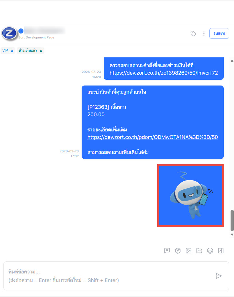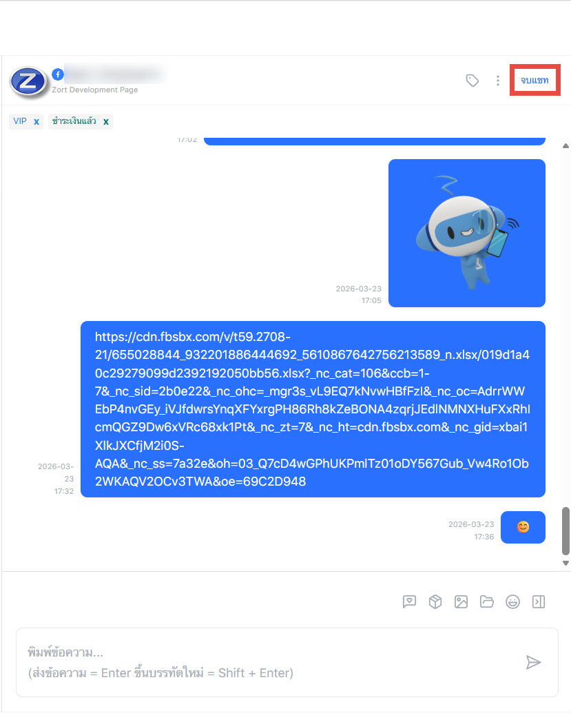 14. ปุ่มจบแชท : หลังจากผู้ใช้งานตอบข้อความและปิดการขายลูกค้าเรียบร้อยแล้ว สามารถกดปุ่ม “ปิดแชท” ได้