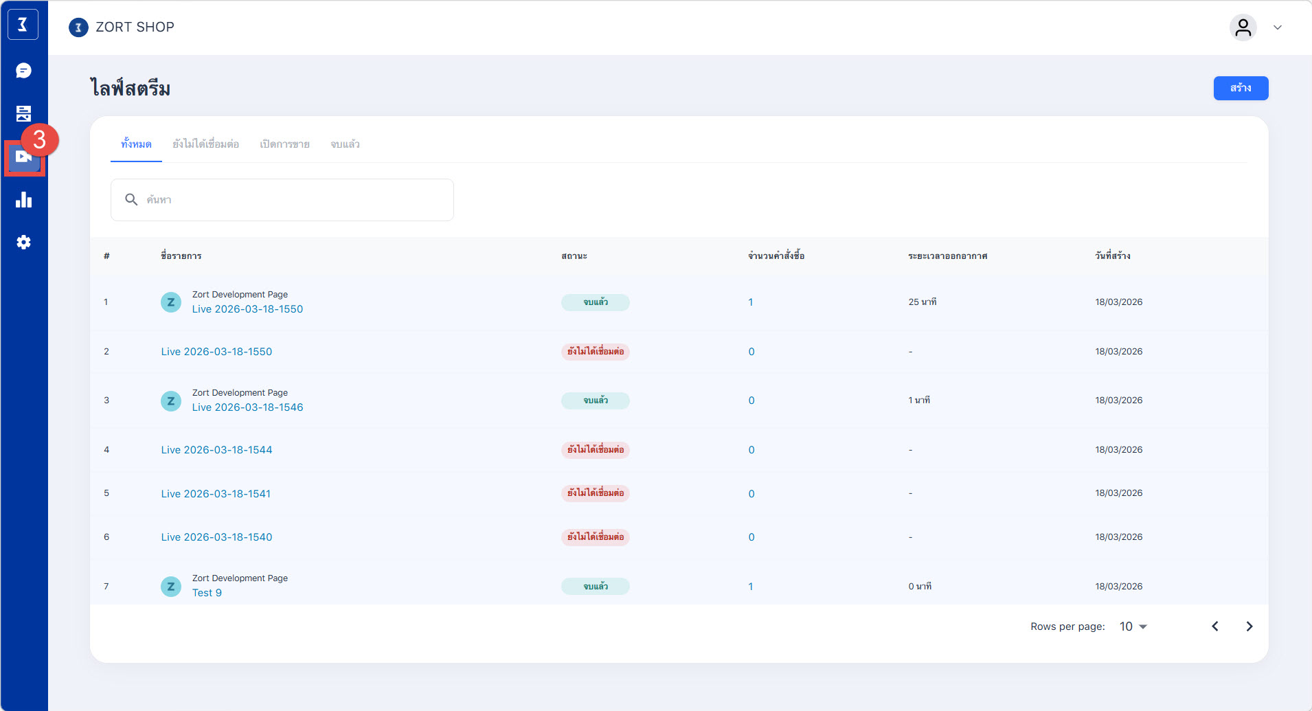 3. ไลฟ์สตรีม : ผู้ใช้งานสามารถสร้างหรือดูประวัติการ CF สินค้าผ่านไลฟ์สตรีมของช่องทาง Facebook ได้
