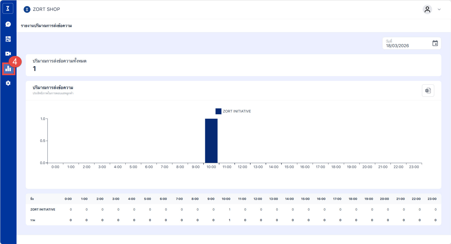 4. รายงานปริมาณการส่งข้อความ : ผู้ใช้งานสามารถดูข้อมูลการตอบข้อความของพนักงานได้ (จำนวนที่แสดงผลในรายงานจะมาจากการตอบข้อความผ่านระบบ ZORT เท่านั้น)
