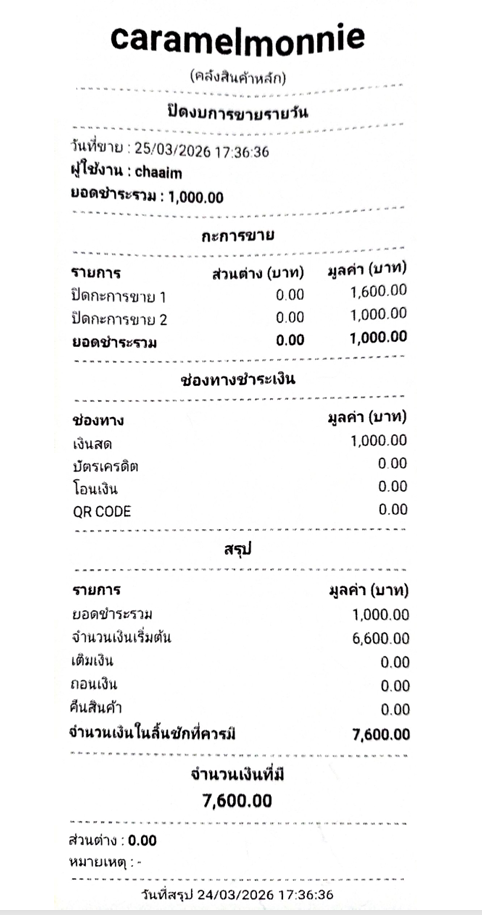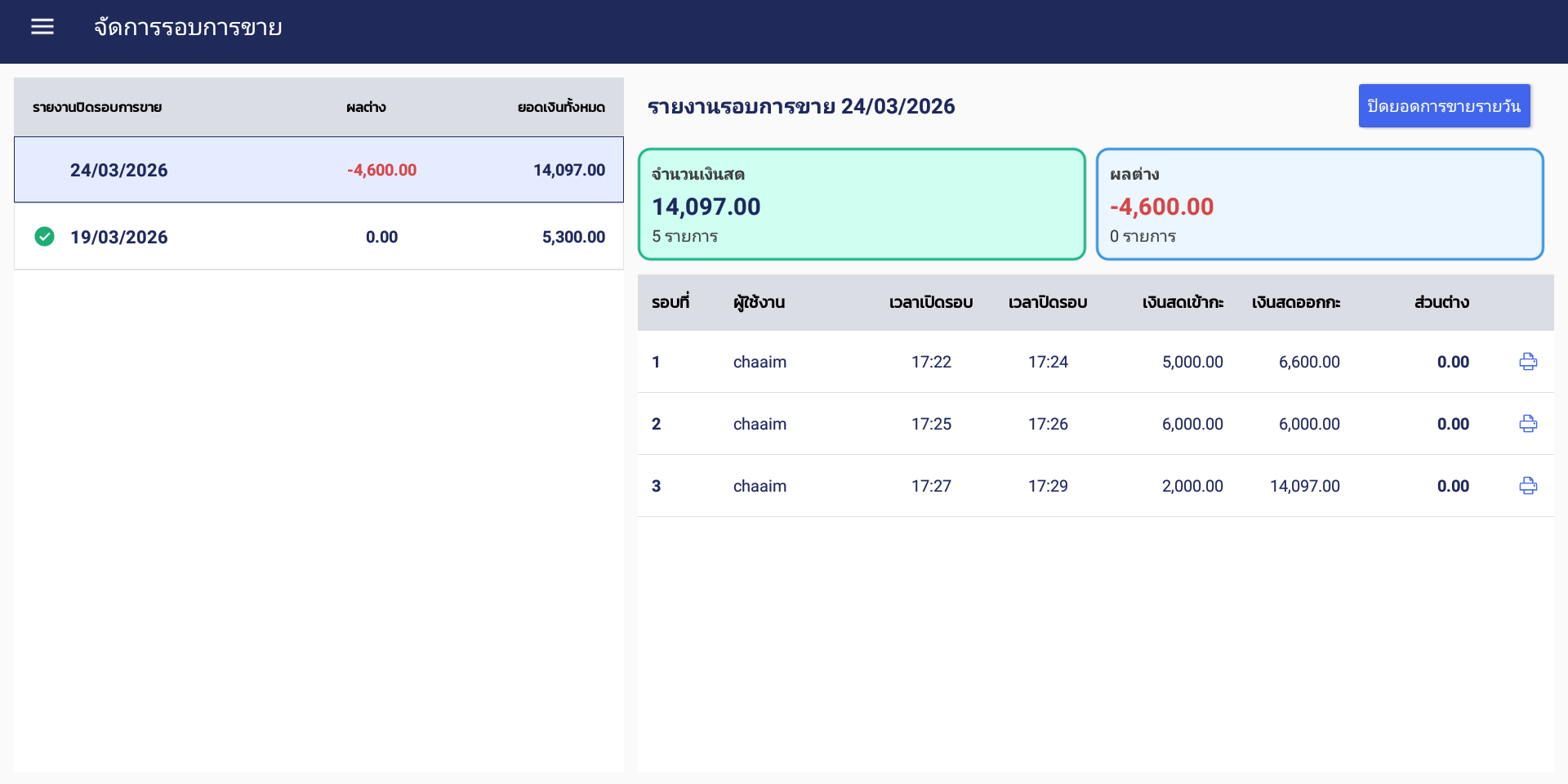 ตัวอย่างรายงานรอบการขายของแต่ละกะ