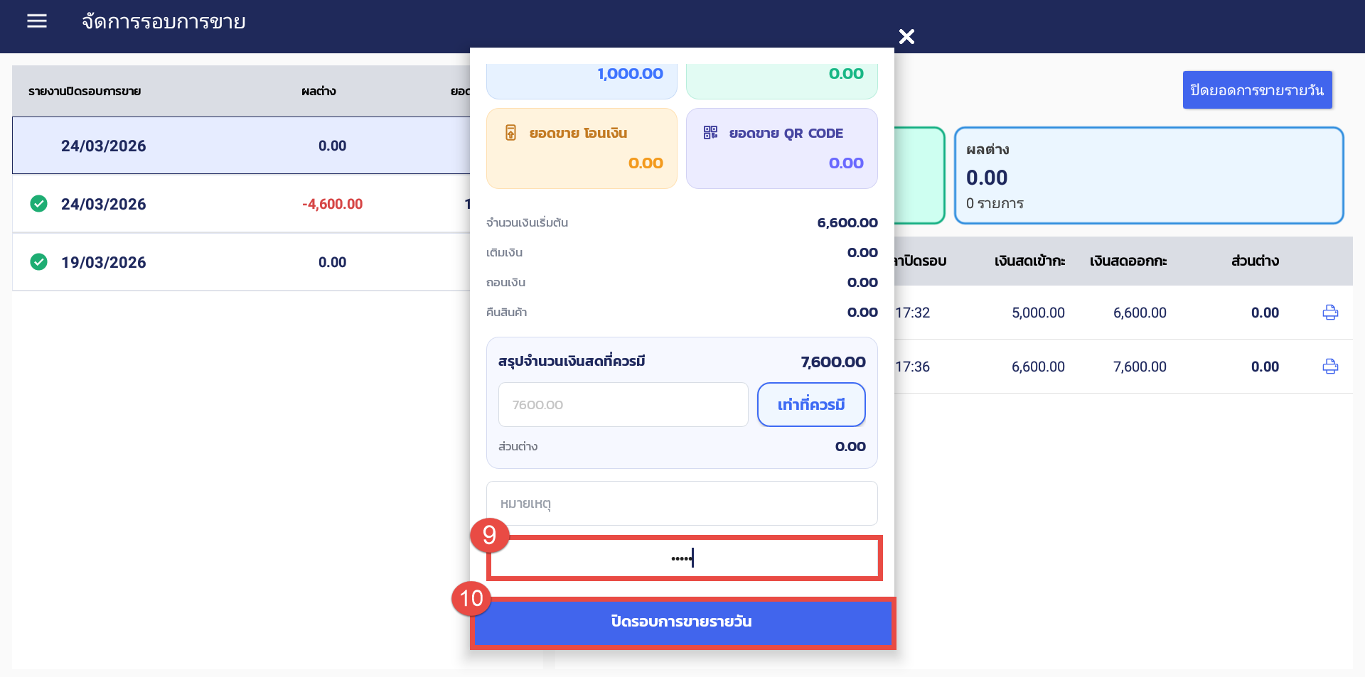 10.กดปุ่ม“ปิดรอบการขายรายวัน”