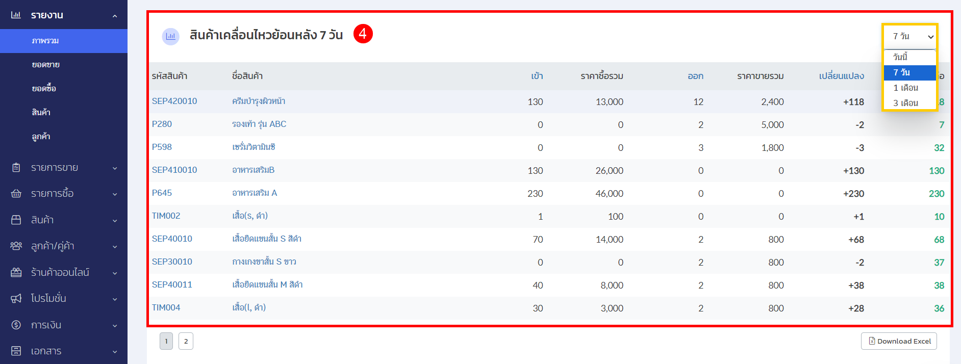 - สินค้าเคลื่อนไหวย้อนหลัง