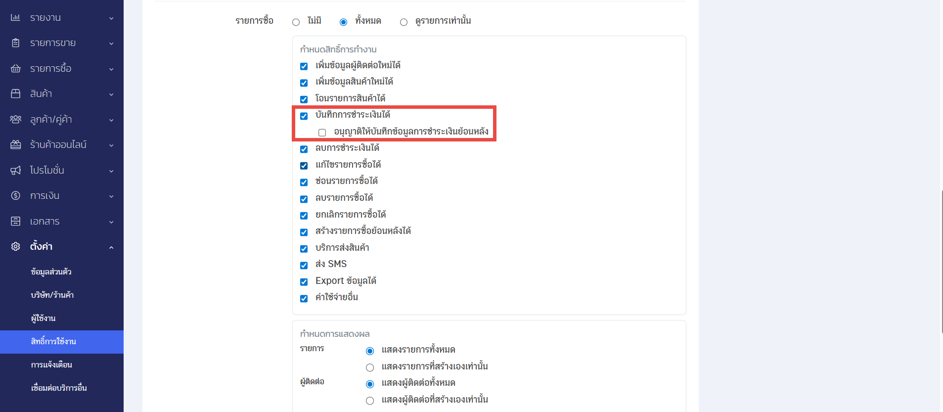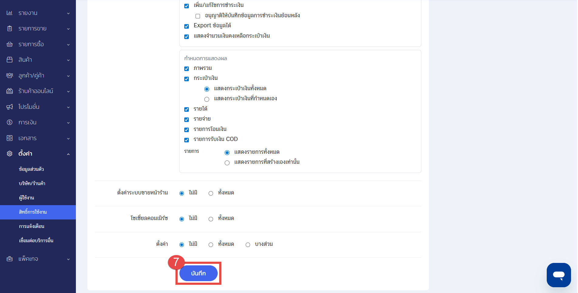 หลังจากผู้ใช้งานตั้งค่าตามขั้นตอนด้านบนเรียบร้อยแล้ว การตั้งค่านี้จะช่วยให้เจ้าของร้านค้าสามารถกำหนดสิทธิ์ผู้ใช้งานได้ตรงตามความต้องการ ซึ่งเป็นส่วนสำคัญในการควบคุมและดูแลข้อมูลทางการเงินให้มีความถูกต้องและปลอดภัยในทุกขั้นตอนของการทำงาน