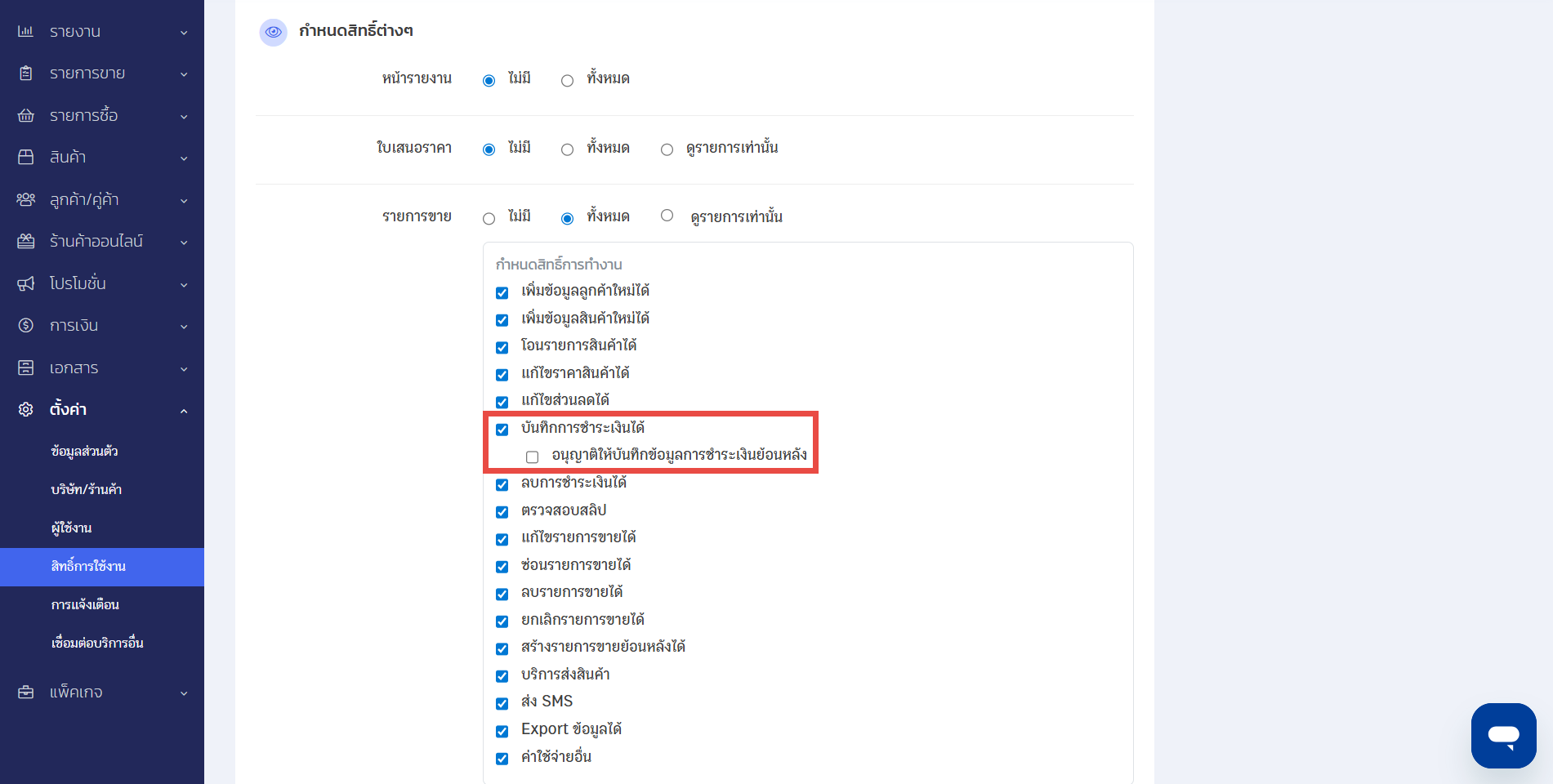 วิธีการกำหนดสิทธิ์ไม่ให้ผู้ใช้งานบันทึกการชำระเงินย้อนหลังได้