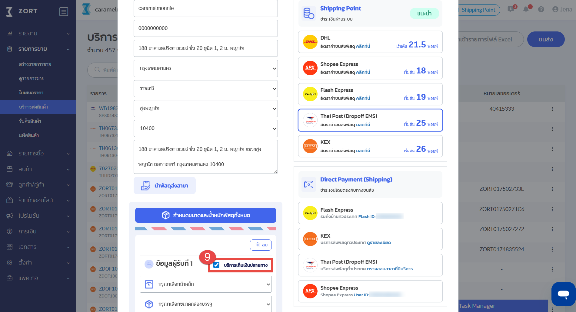9. เมื่อระบบอนุมัติเรียบร้อยแล้ว สามารถใช้งานส่งสินค้าแบบเก็บเงินปลายทางได้เลย