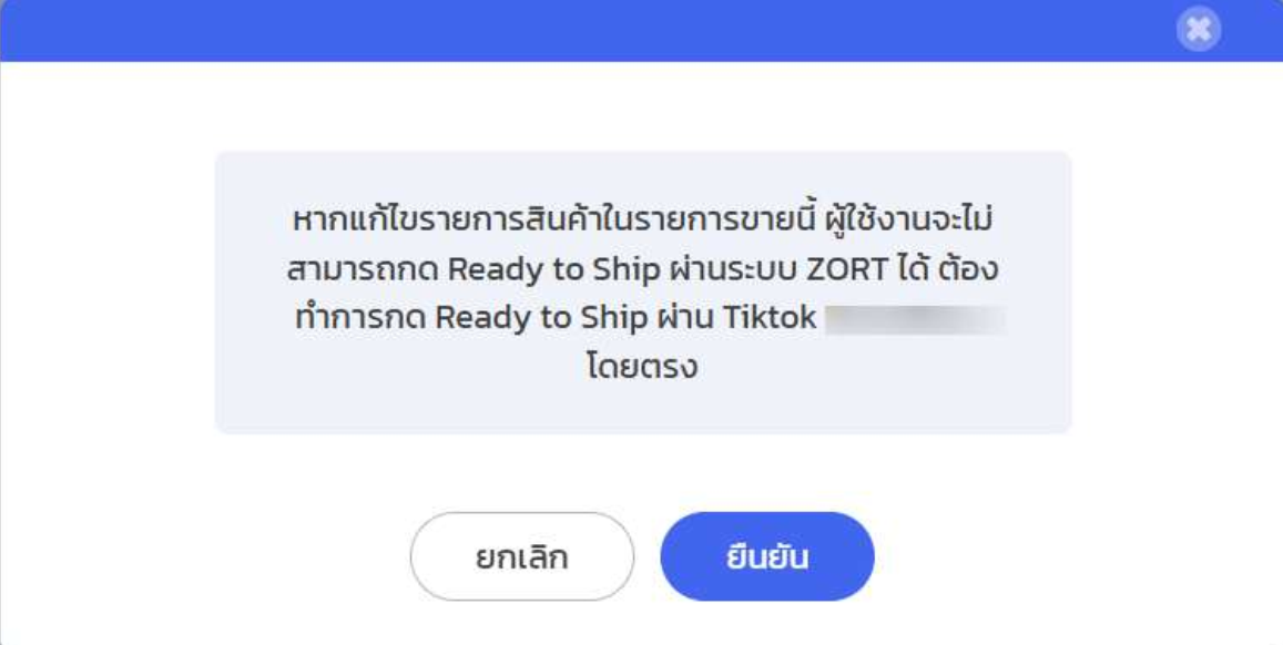กรณีผู้ใช้งานแก้ไขรายการสินค้าในรายการขาย ระบบจะอนุญาตให้กดบันทึกรายการขายได้ตามปกติ แต่ผู้ใช้งานจะไม่สามารถกด “Ready to ship” บนระบบ ZORT ได้ จะต้องกด Ready to ship บนแพลตฟอร์มเท่านั้น