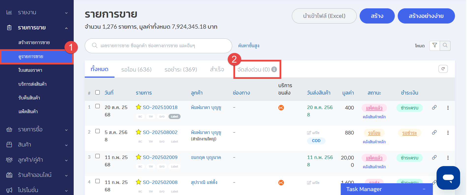 3. ระบบจะแสดงออเดอร์ที่ต้องจัดส่งด่วนขึ้นมาให้ตามตัวอย่าง