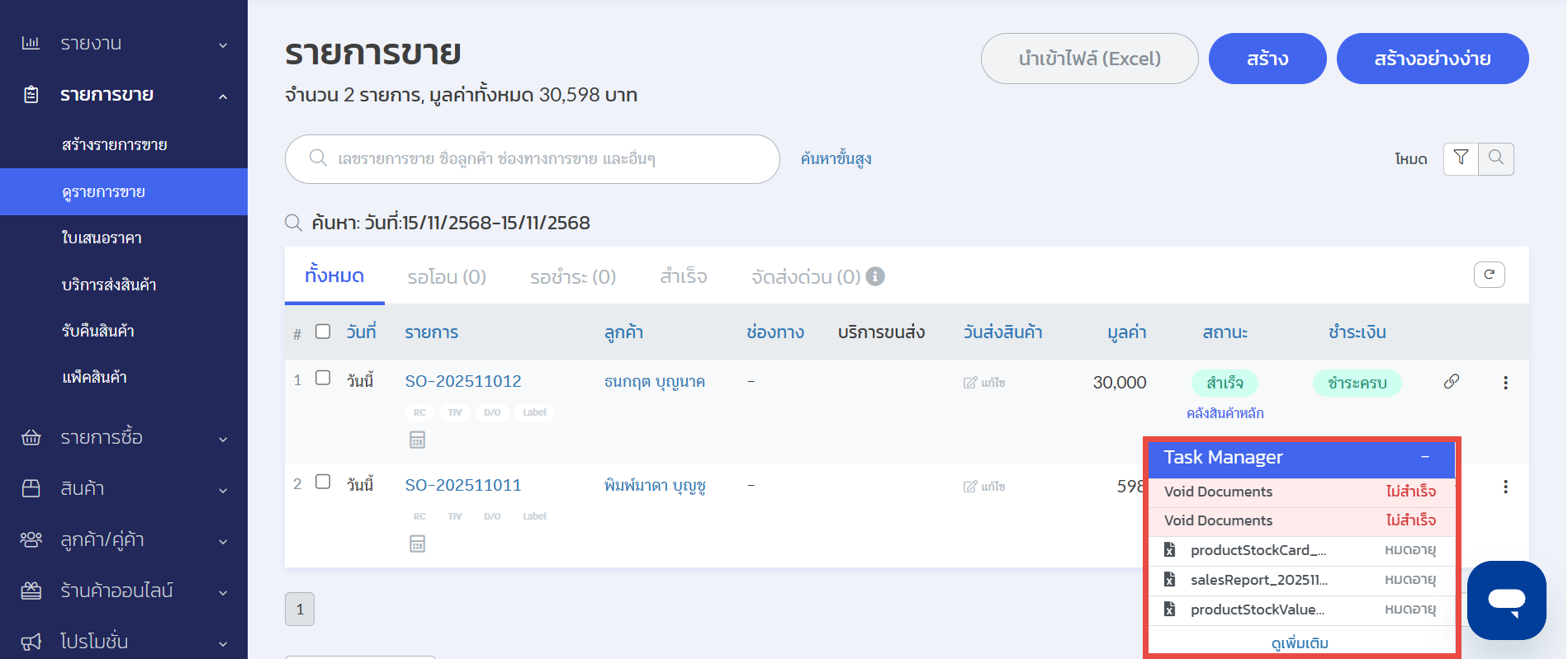 วิธีการยกเลิกเอกสารใบเสร็จรับเงินที่ส่งไประบบ PEAK พร้อมกันหลายรายการ