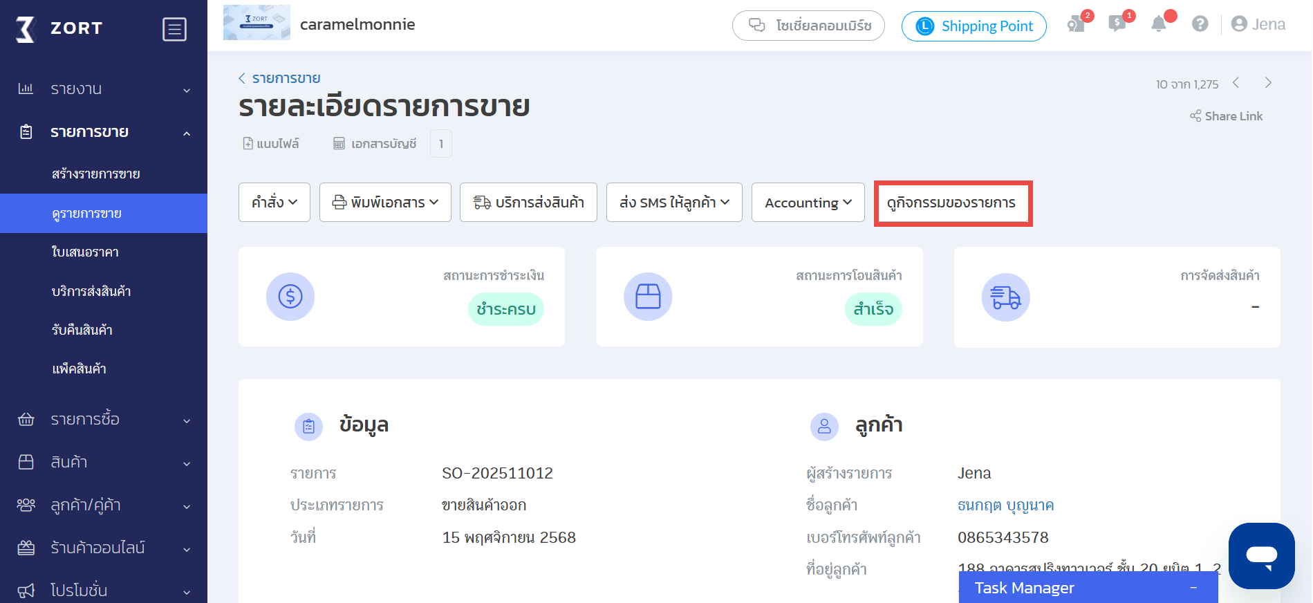 1. ไปที่เมนูรายการขายเลือกหัวข้อดูรายการขาย
