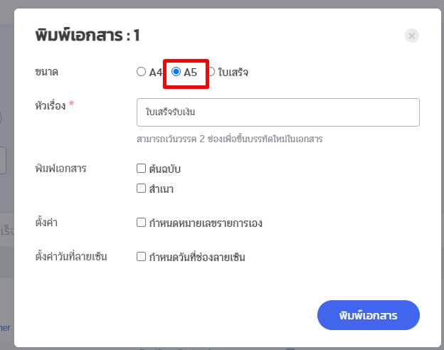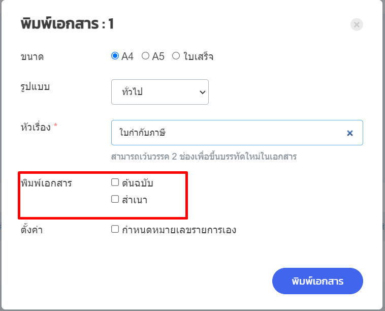 - เพิ่มตัวเลือกการพิมพ์เอกสาร 2 ตัวเลือก (ไม่บังคับ)