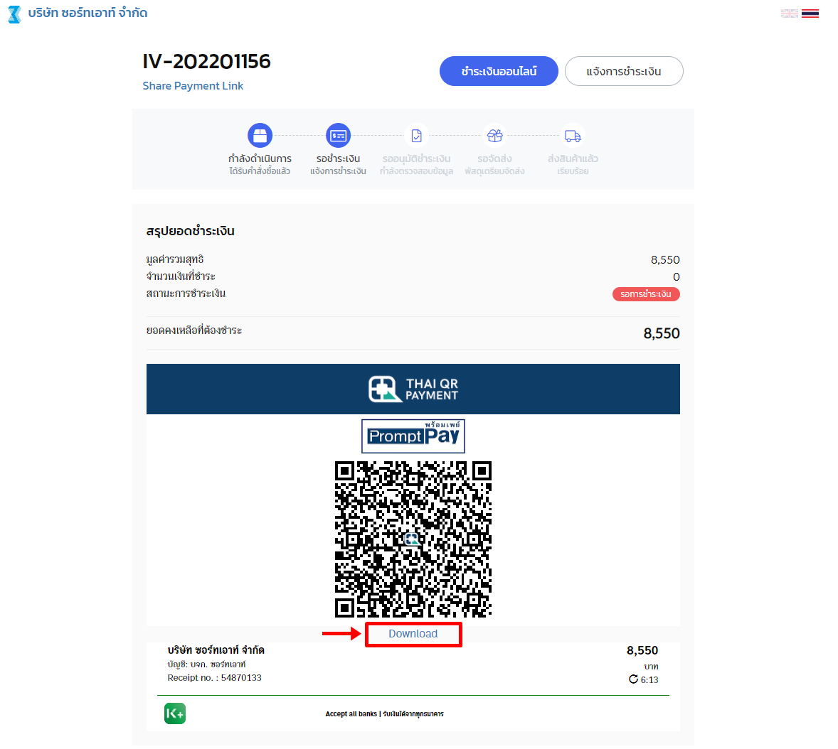 - เพิ่มปุ่ม Download QR Code เพื่อนำภาพ QR Code ไปใช้งานได้สะดวกขึ้น เช่น การจ่ายผ่าน Application ธนาคารต่างๆโดยการ Import รูป QR เข้าไป แทนการแสกน