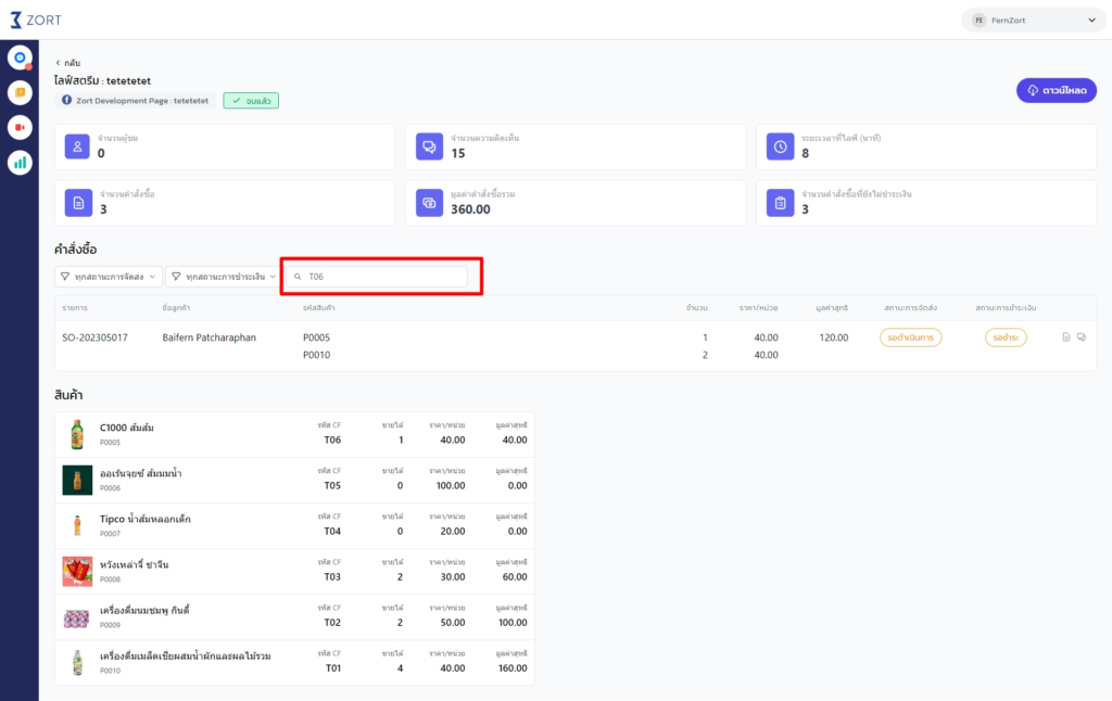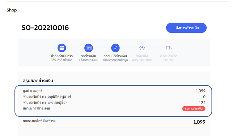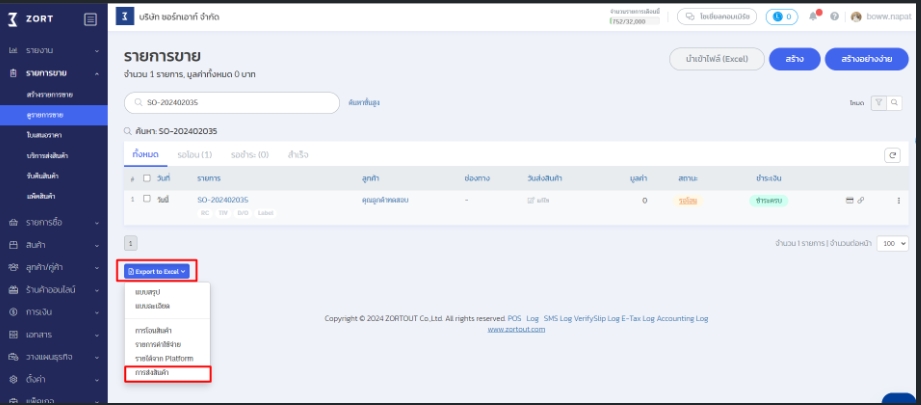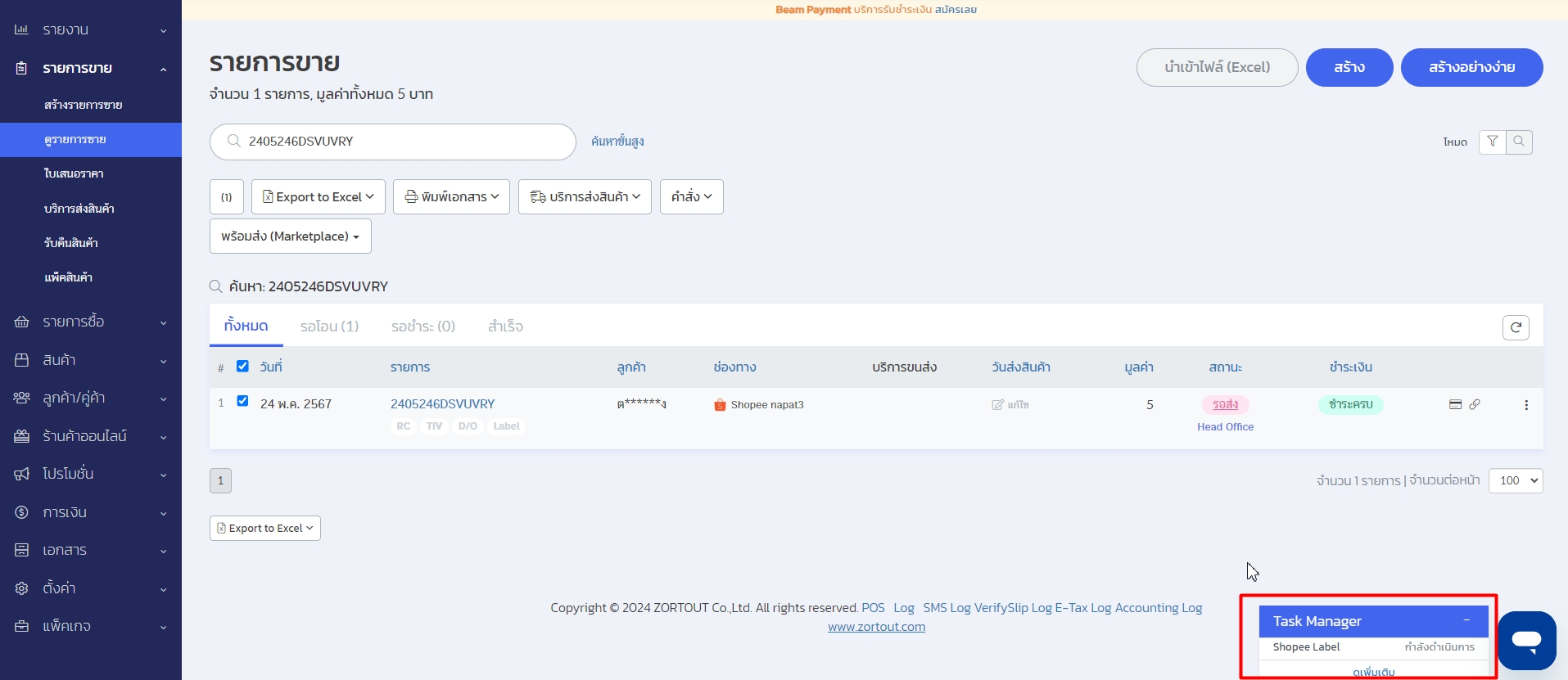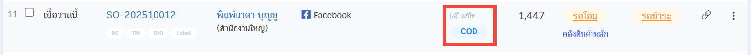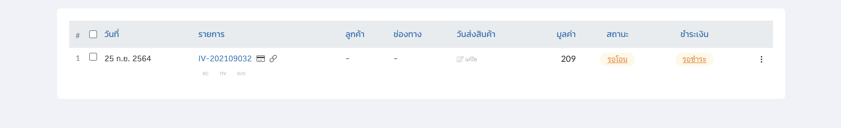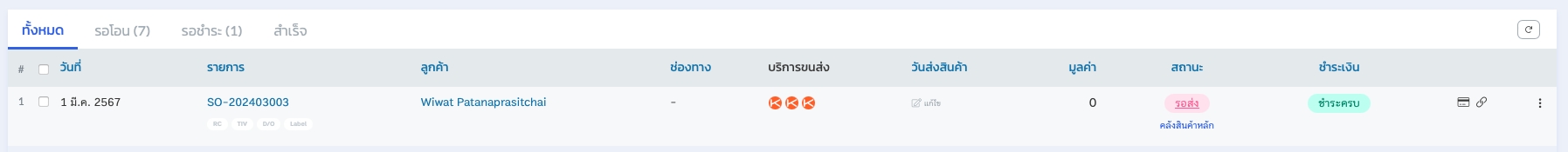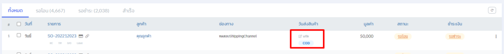 - ระบบจะแสดงออเดอร์ภายในวันนั้น ๆ และออเดอร์จะต้องมีสถานะ “รอโอน”
