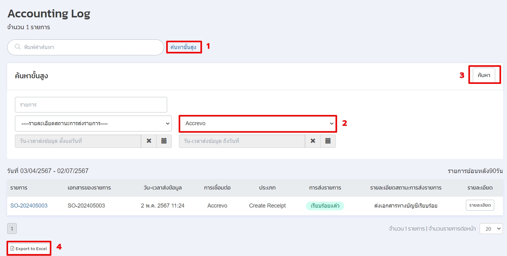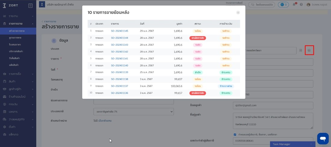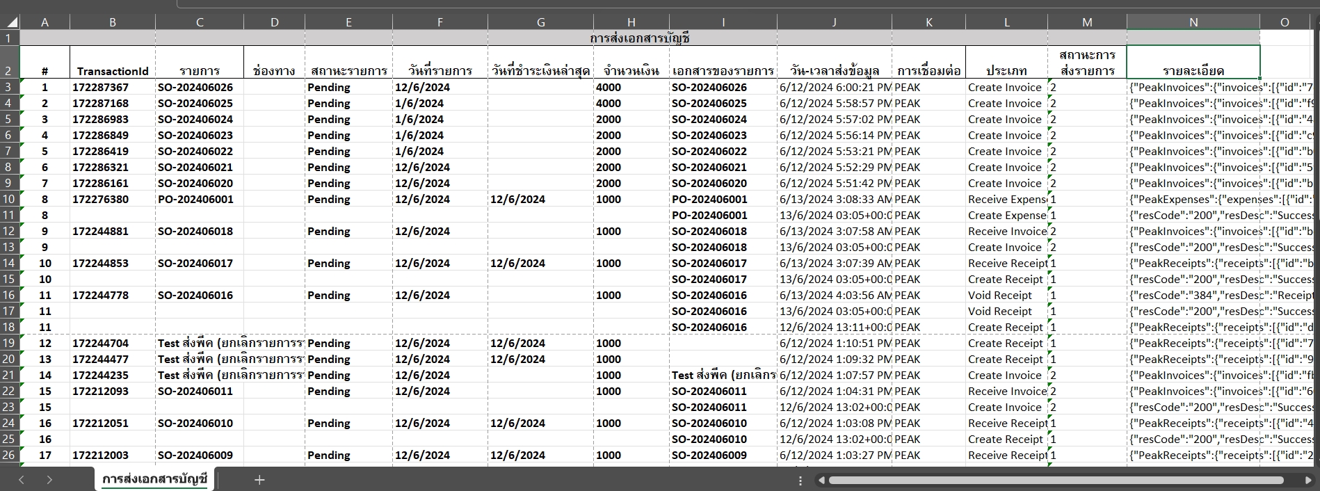 าได้ - เพิ่มปุ่ม “การส่งข้อมูลไประบบบัญชี PEAK” แบบ Manual ที่หน้ารายละเอียดรายการขาย