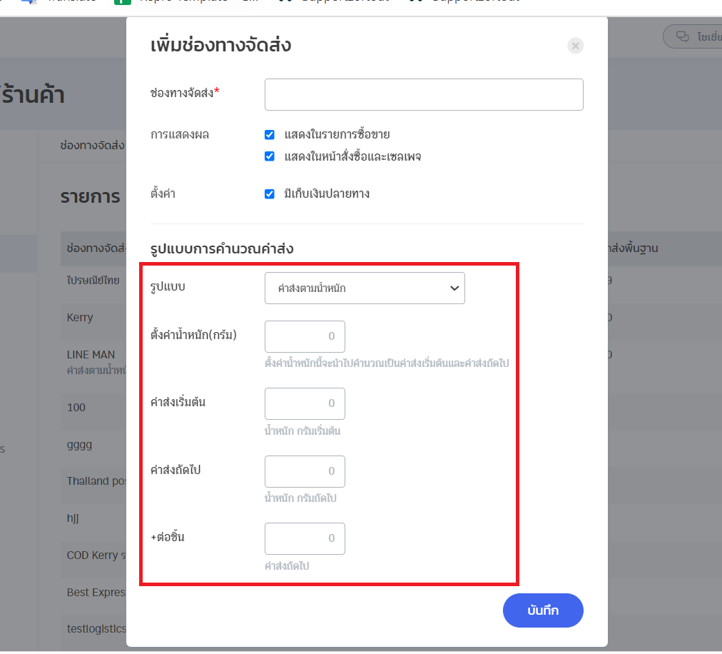 - เพิ่ม Option ช่องทางการจัดส่ง ให้สามารถคิดน้ำหนักของสินค้