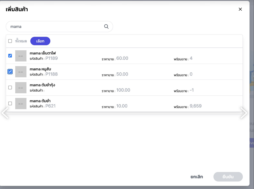 - แสดงสต็อกสินค้า – สามารถเลือกคลังที่จะแสดงสต็