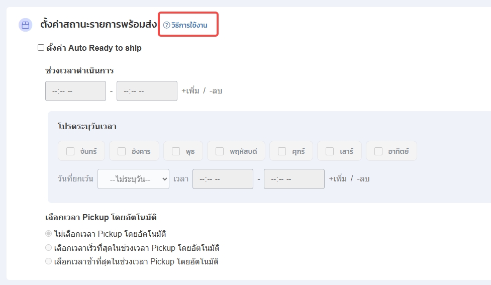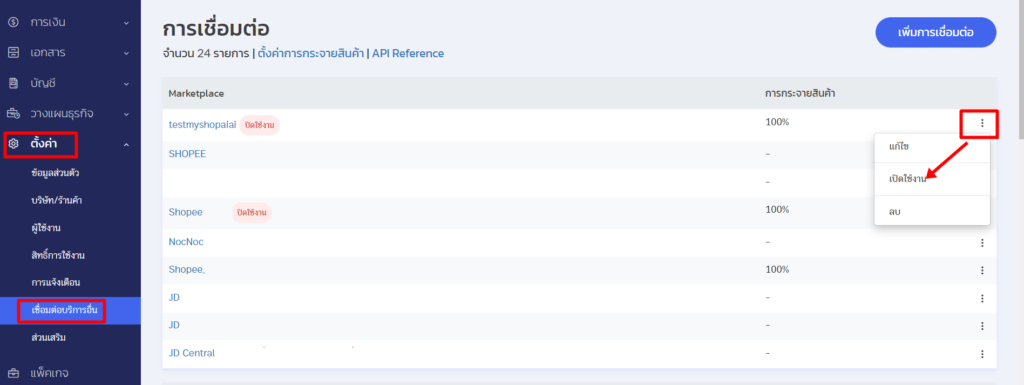 การเปิด – ปิดส่วนนี้ใช้งานได้ทั้ง Marketplace , Website