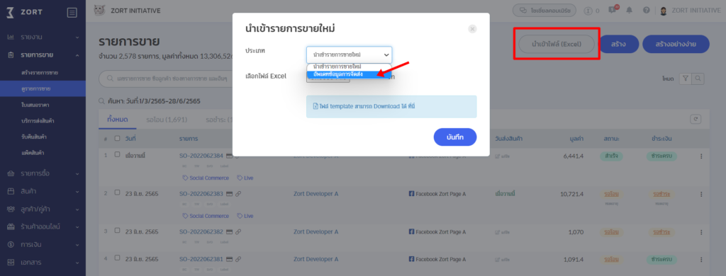 4. อัปเดต Improve excel รายการขาย (Import) – สามารถอัพเดทข้อมูลขนส่งได้