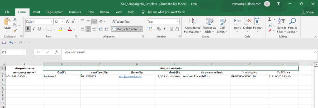 - ไฟล์ที่ได้จะชื่อ Sell_ShippingInfo_Template