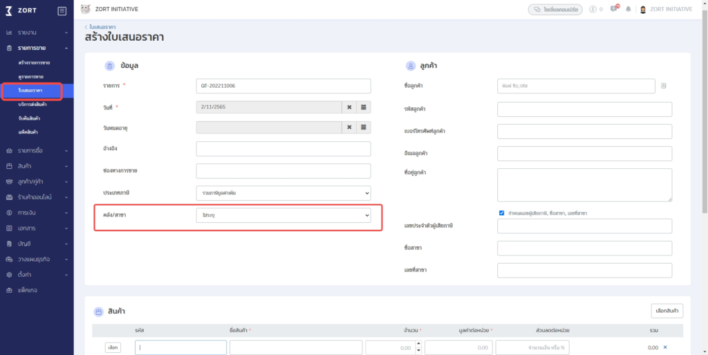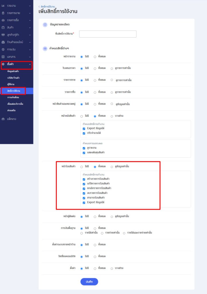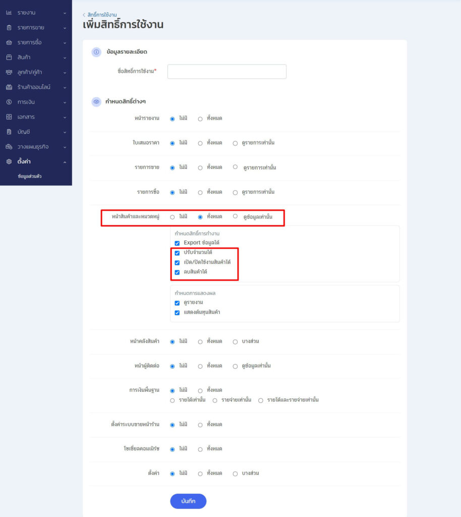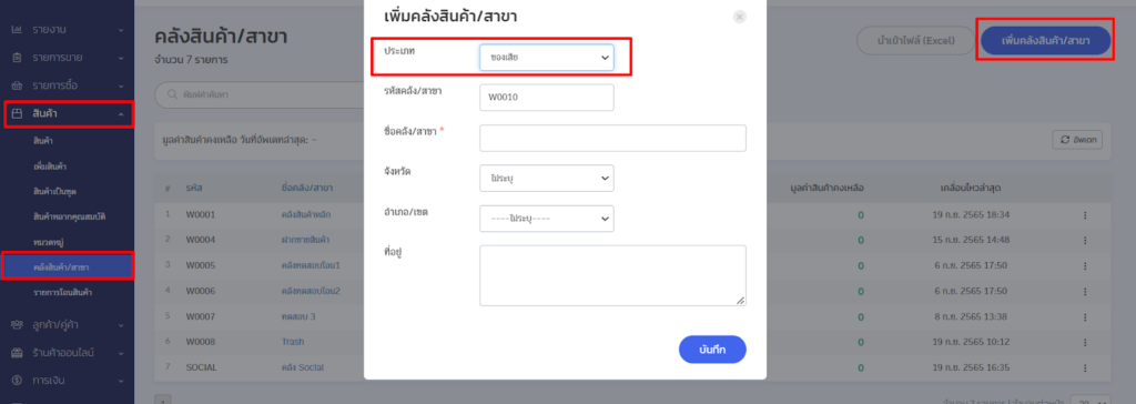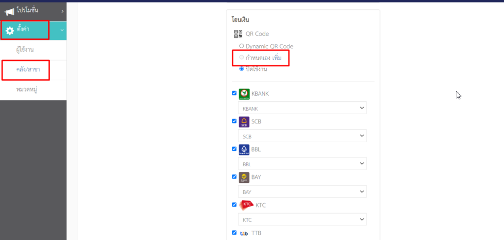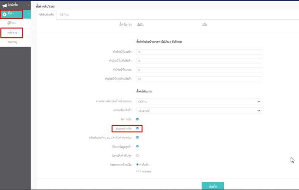 - ตั้งค่าคลัง/สาขา – เพิ่มการตั้งค่า