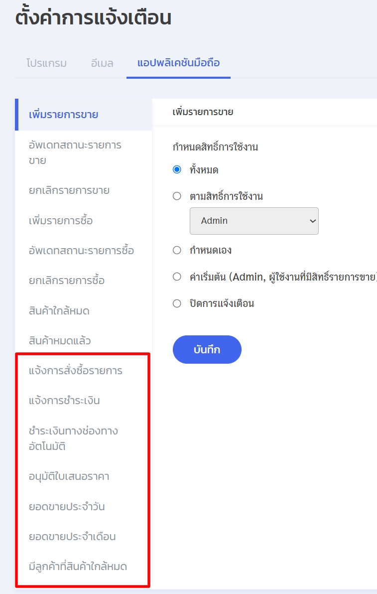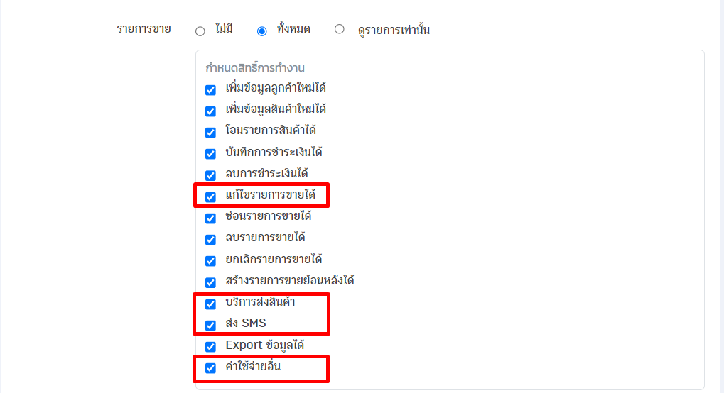 อทำคำสั่ง สร้างรายการขาย, ลบสินค้า, เปิดการใช้งาน, อัพเดทสต๊อกสินค้า