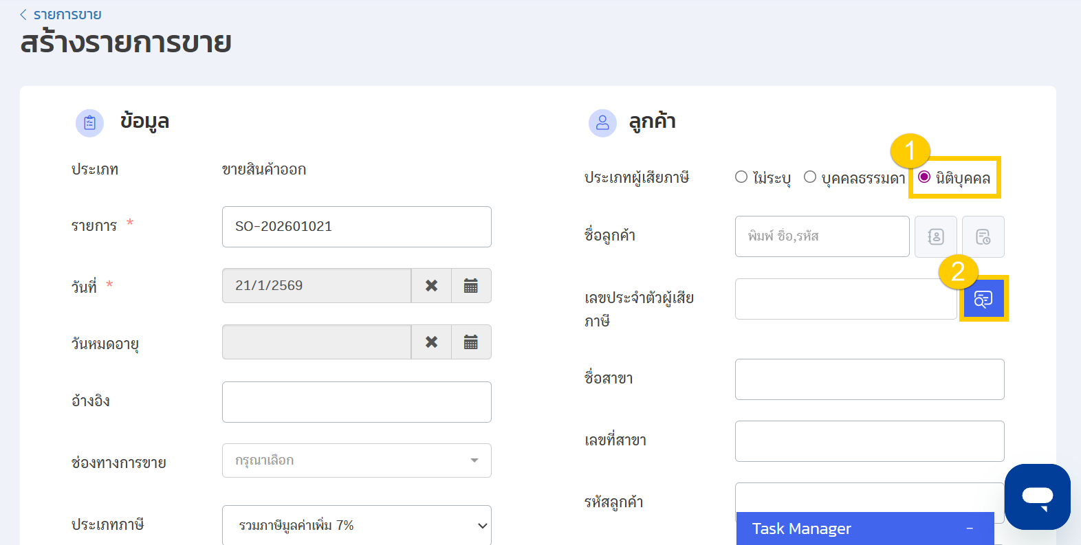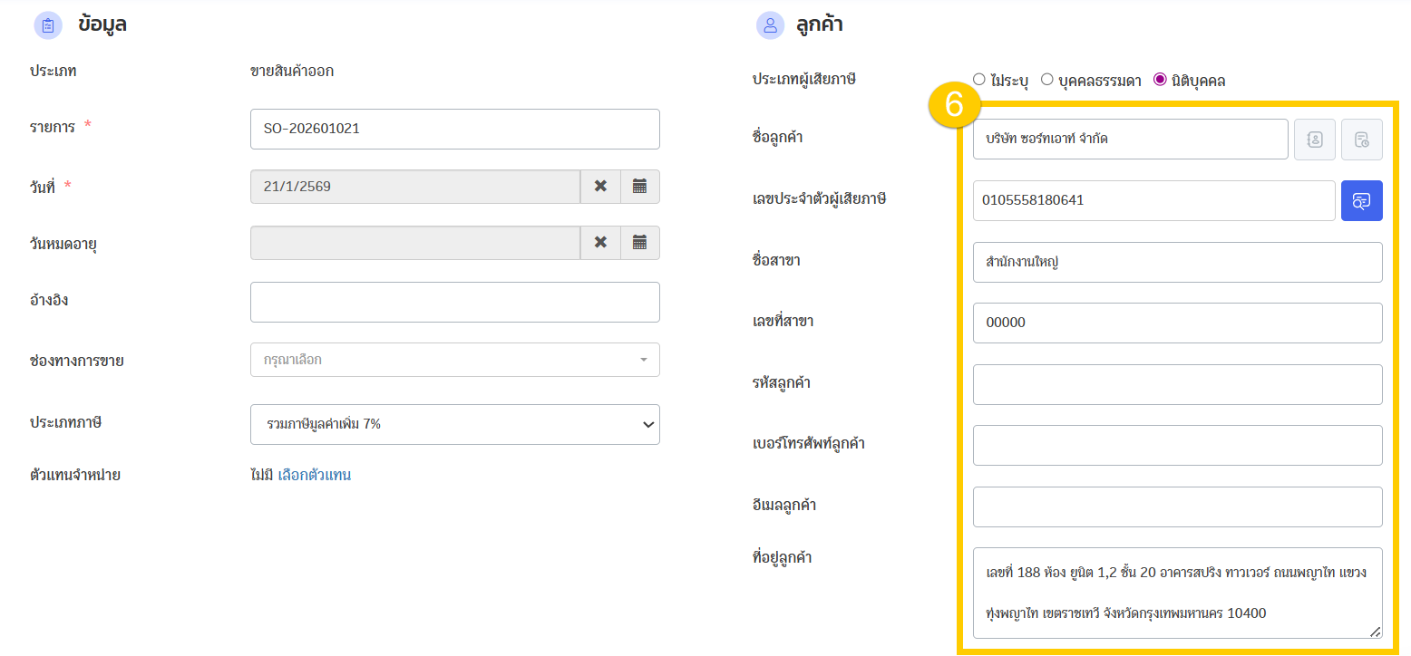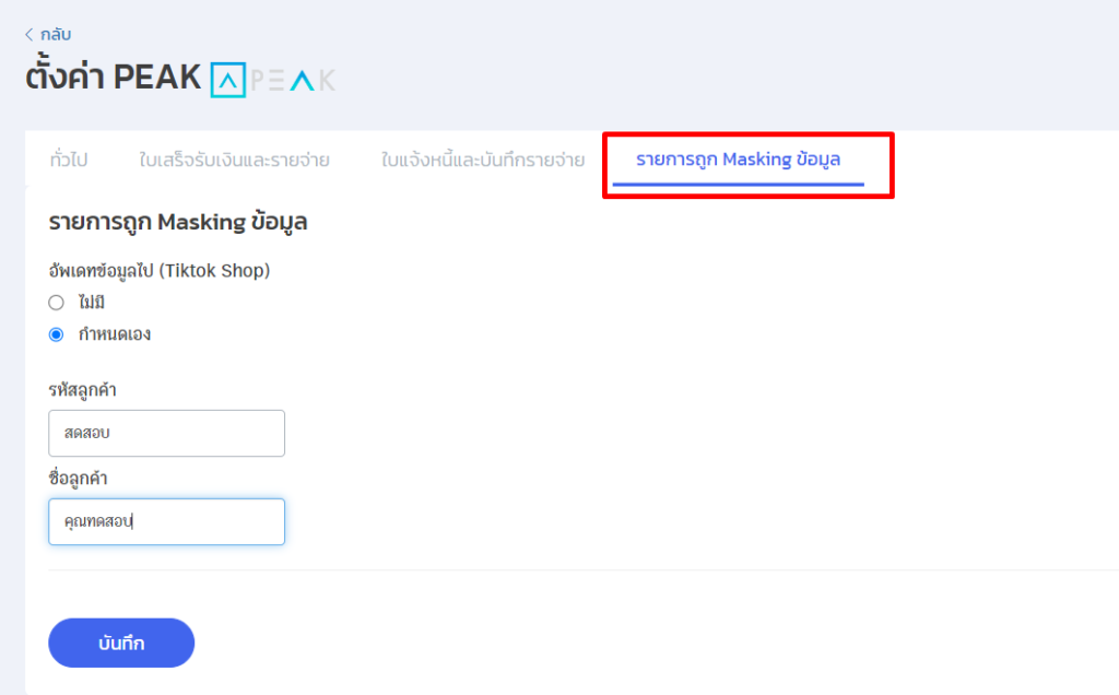 2. ส่งข้อมูลไป PEAK สามารถระบุลูกค้าเป็นบุคคล หรือนิติบุคคลได้