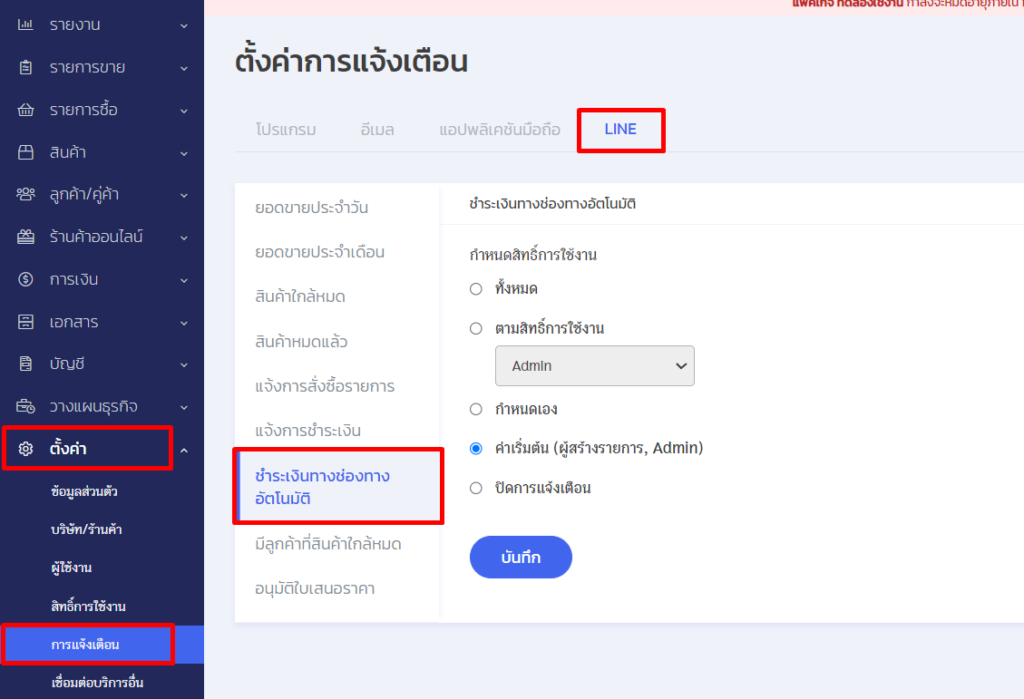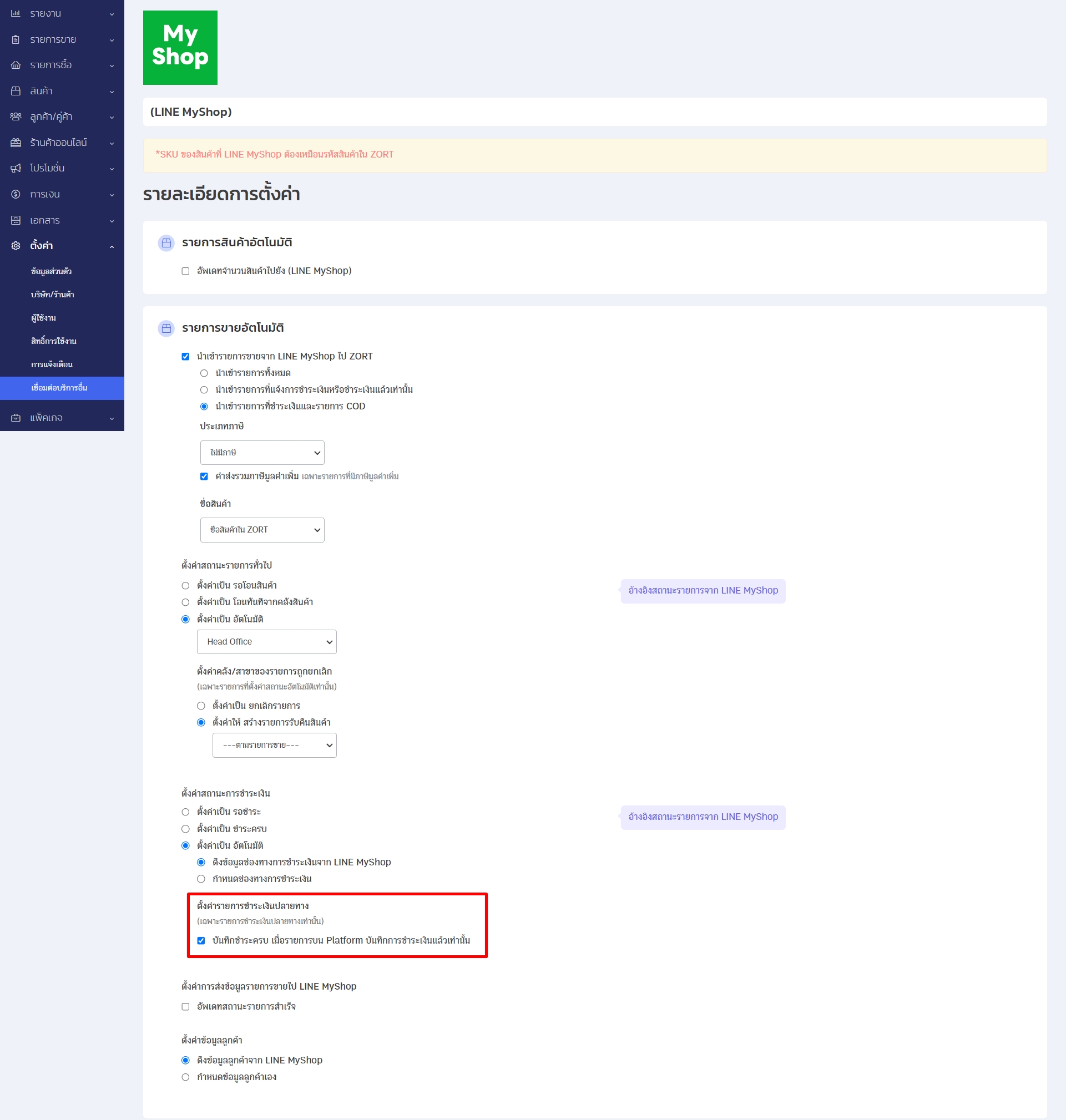 - Line Myshop (ระบบจะแสดงข้อมูลเฉพาะรายการขายที่เกิดขึ้นหลังจากวันที่ 28/08/2025 เท่านั้น)