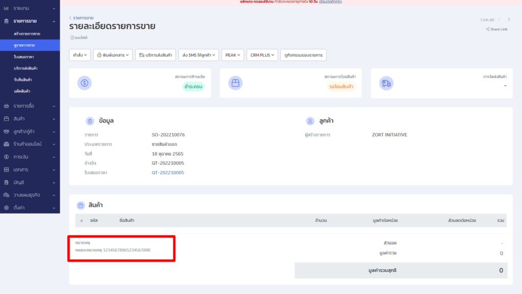 - เอกสารที่กดยกเลิกบน PEAK แล้ว จะไม่สามารถกดยกเลิกบน ZORT ได้