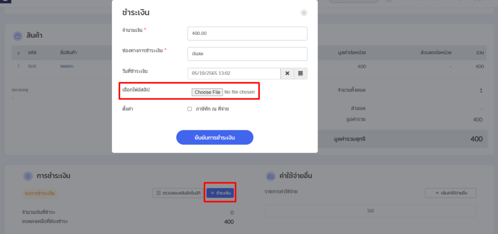 5. อัปเดตการตั้งค่า แนบสลิปหน้าสั่งซื้อ
