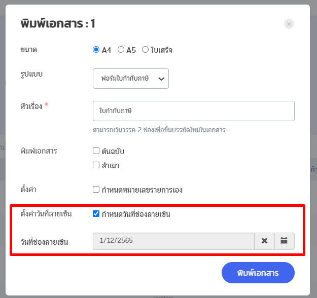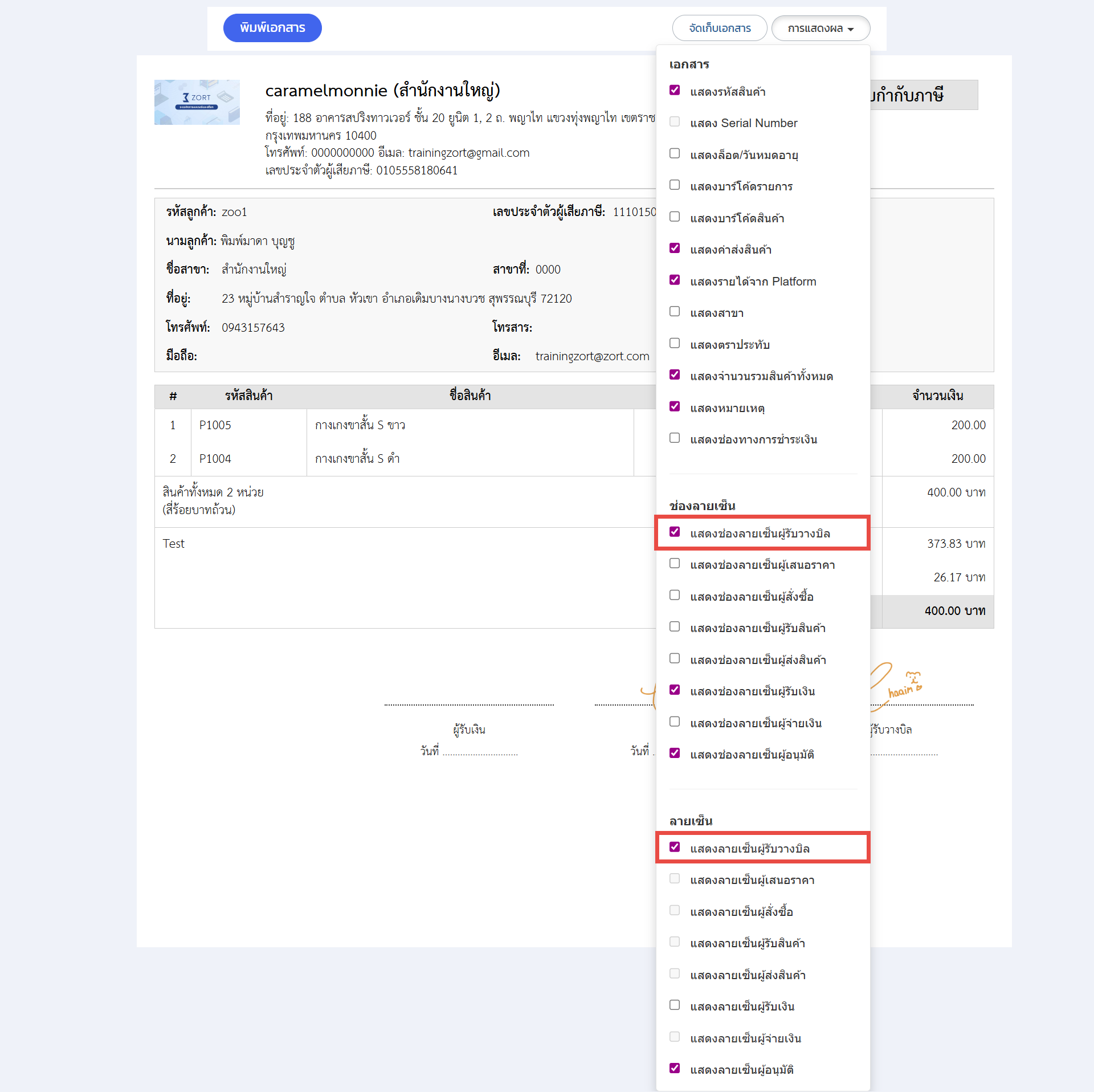 2. เพิ่มการแสดงลายเซ็นต์และตราประทับในหน้าเอกสารหัก ณ ที่จ่าย อ่านคู่มือการใช้งาน คลิก