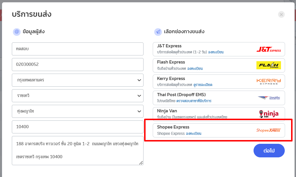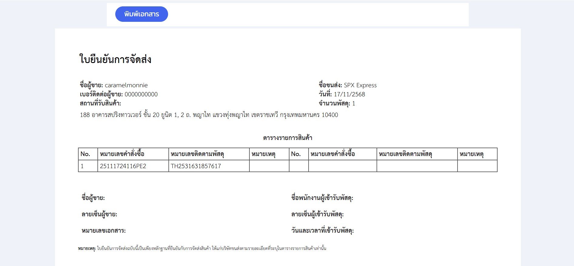 - ออเดอร์ต้องมีสถานะ “รอส่ง” หรือกด “Ready to ship” แล้วเท่านั้น