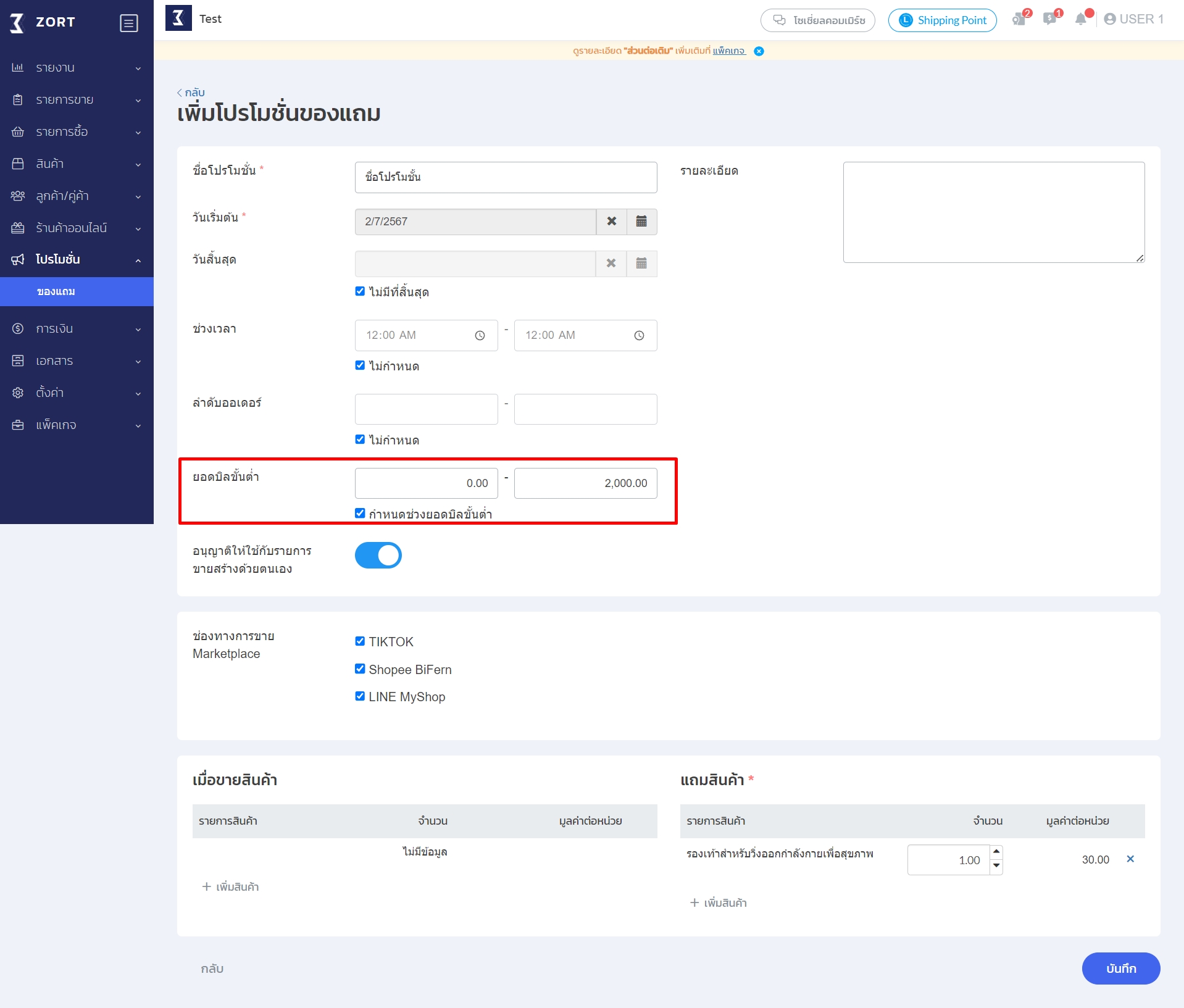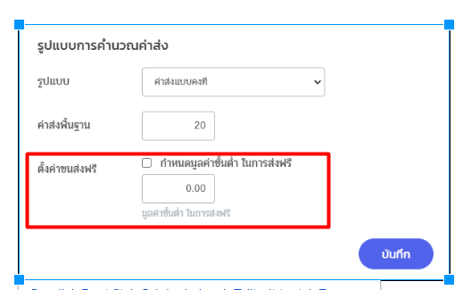 - อัปเดตฟีเจอร์การตั้งค่าการคำนวณค่าส่ง เพิ่มปุ่ม Checkbox ที่เมนูตั้งค่าขนส่งฟรี หากไม่ติ๊กช่อง Checkbox จะไม่สามารถกรอกมูลค่าขั้นต่ำ ในการส่งฟรีได้