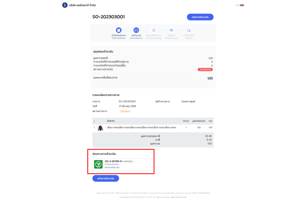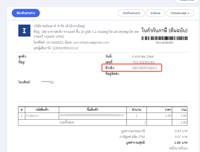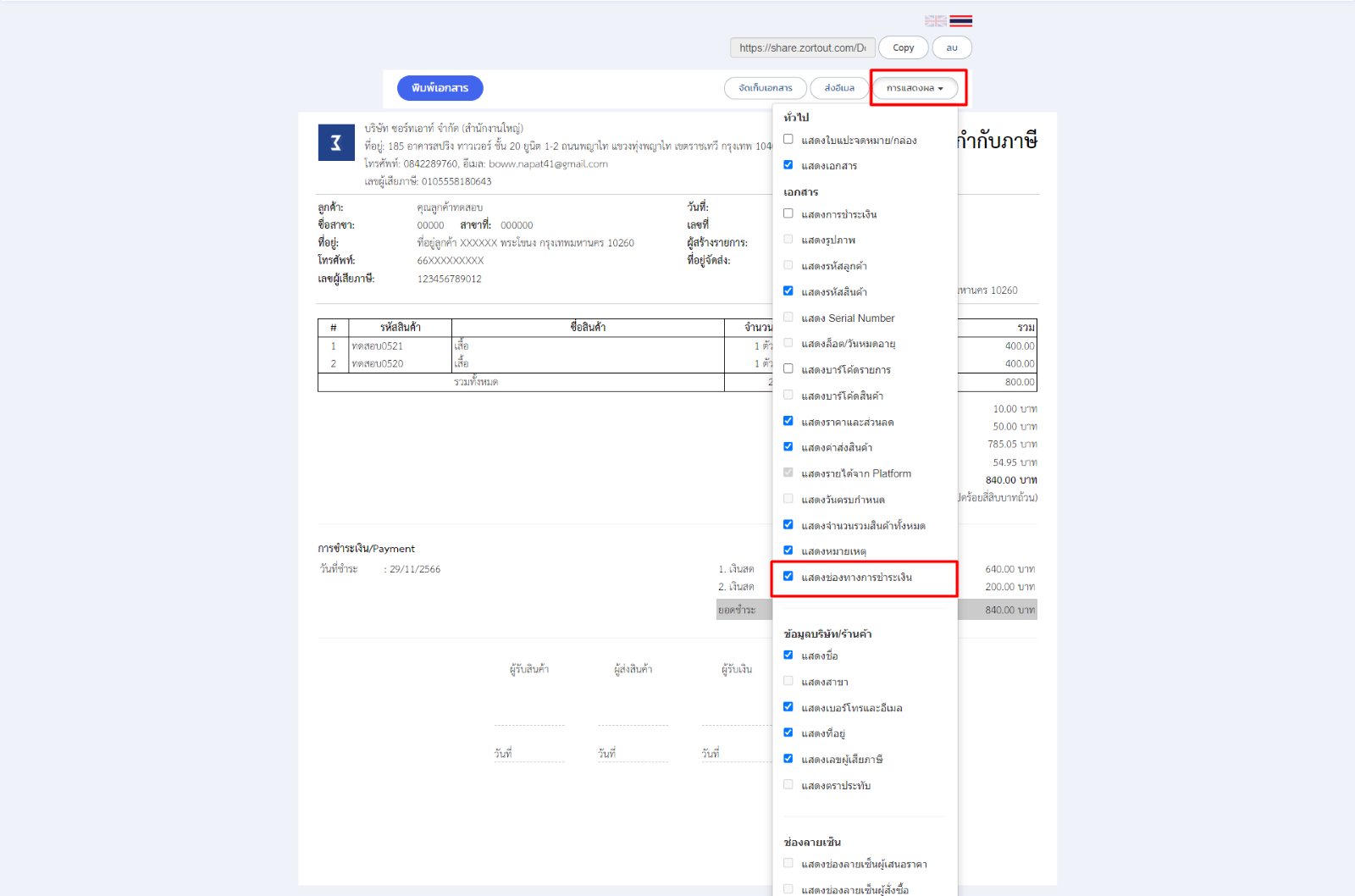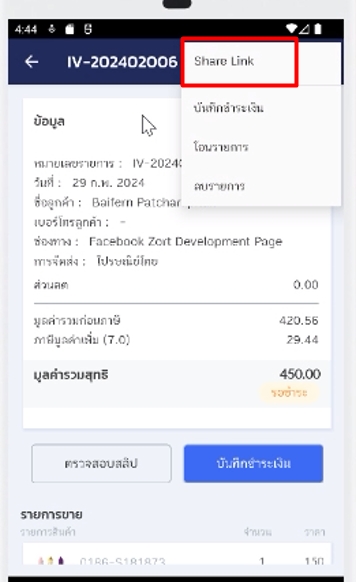 - กด icon แชร์รายการแล้วระบบคัดลอก link หน้าแจ้งชำระเงินของ ZORT ให้ทันที