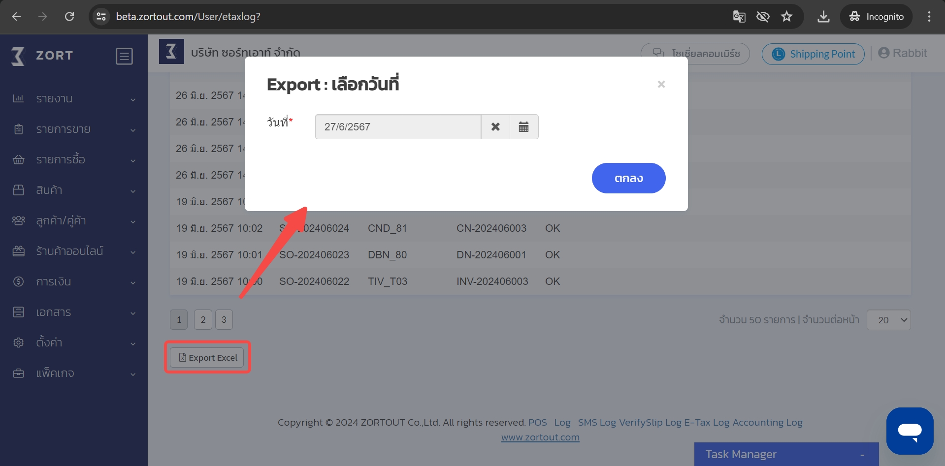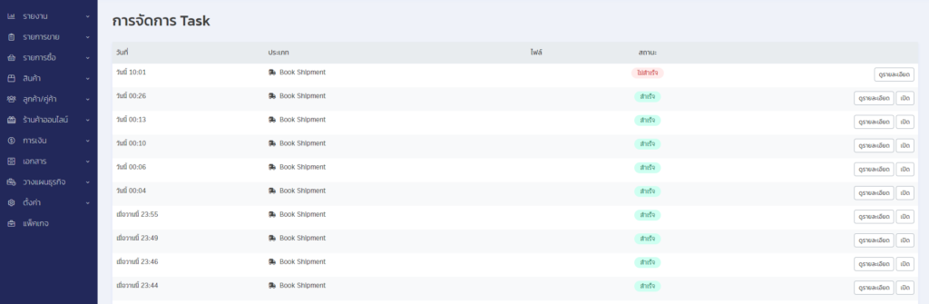 - อัปเดตฟีเจอร์ Logistic แบบ Shipping Point เพิ่มการ Export รายงานการส่งพัสดุ หน้า